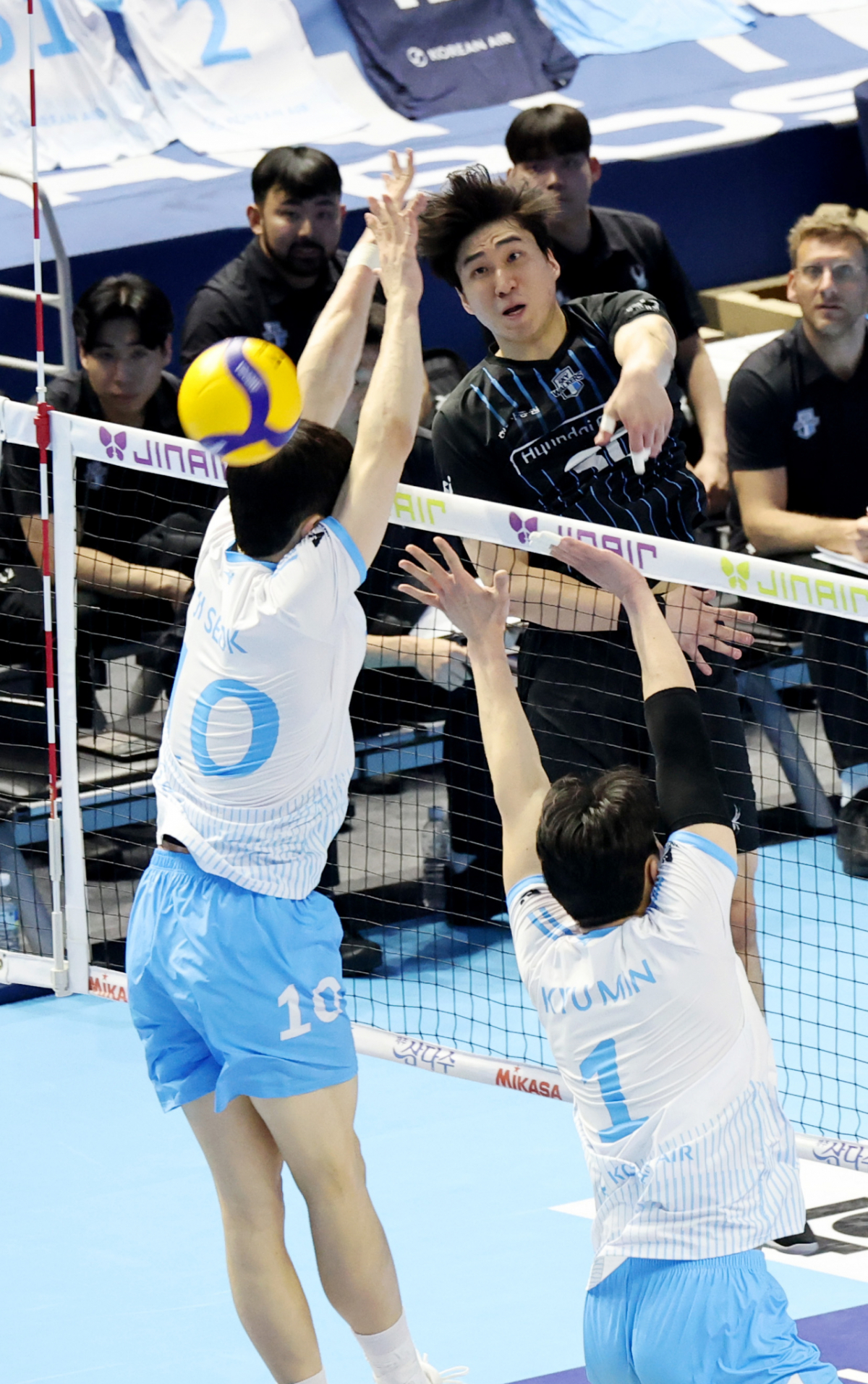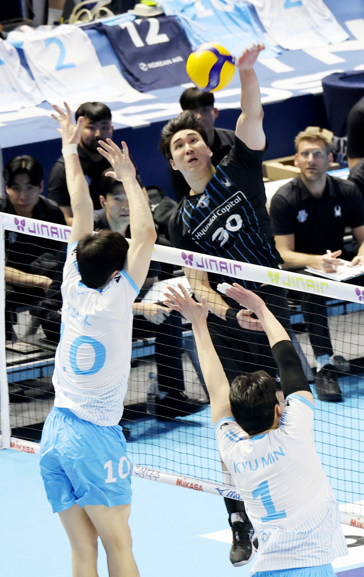 혀대 신호진이 3일 계양체육관에서 열린 진에어 2025-2026 V리그 챔피언결정전 대한항공과 현대캐피탈 경기에서 강타를 성공하고 있다. 2026.04.03.