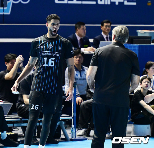 삼각편대가 감을 제대로 잡은 현대캐피탈이 3세트에서 흐름을 그대로 이었다. 바야르사이한이 속공으로 득점에 가세했고, 김진영이 서브 에이스로 천안 원정팬들을 열광시켰다. 17-13에서 연속 4점을 내주며 다시 시소게임 양상이 전개됐지만, 21-21에서 레오, 허수봉이 연달아 득점을 올린 뒤 24-23에서 다시 허수봉이 날아올라 세트 스코어 2-1 우위를 이끌었다.