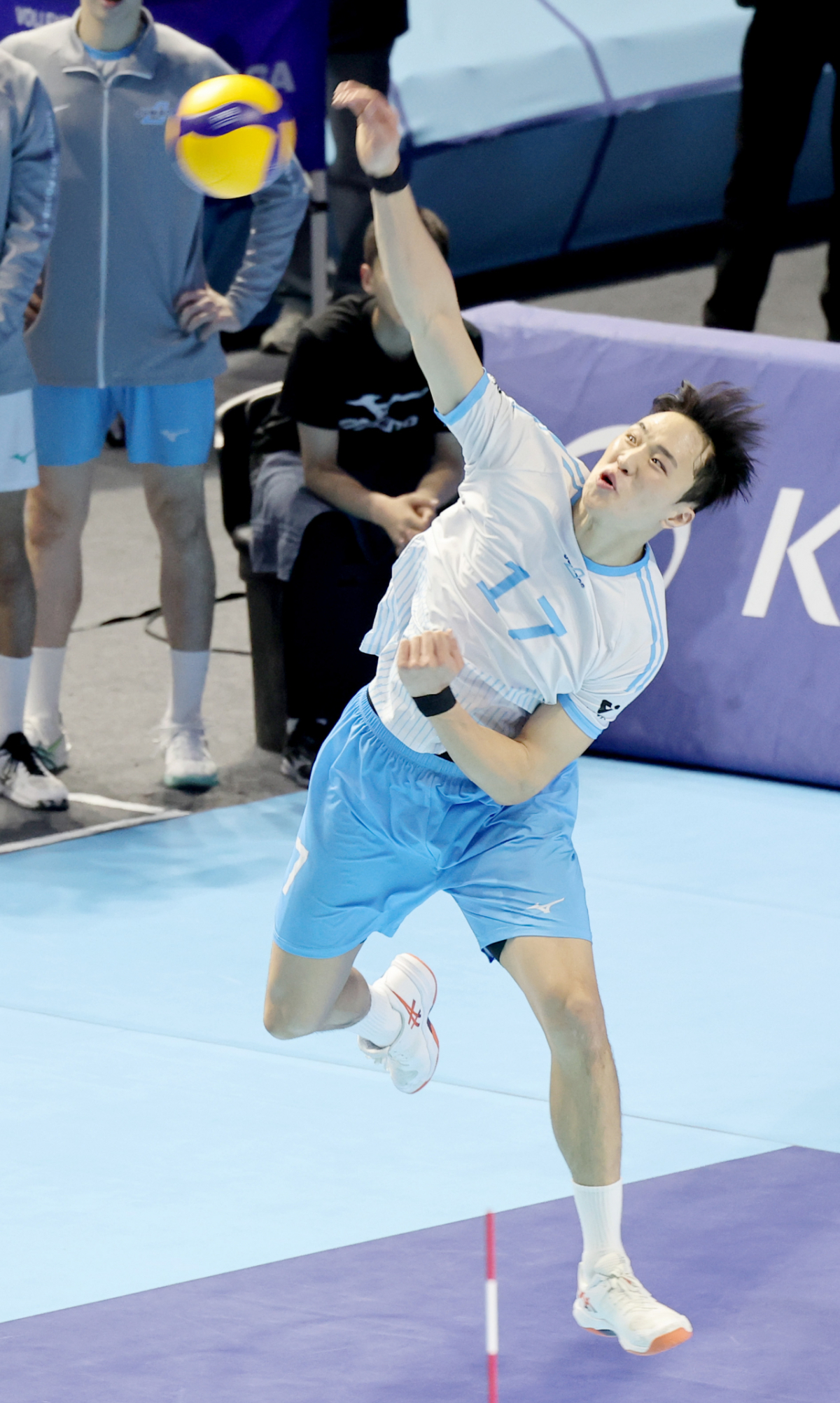 대한항공 임동혁이 3일 계양체육관에서 열린 진에어 2025-2026 V리그 챔피언결정전 대한항공과 현대캐피탈 경기에서 강력한 스파이크서브를 시도하고 있다. 2026.04.03.