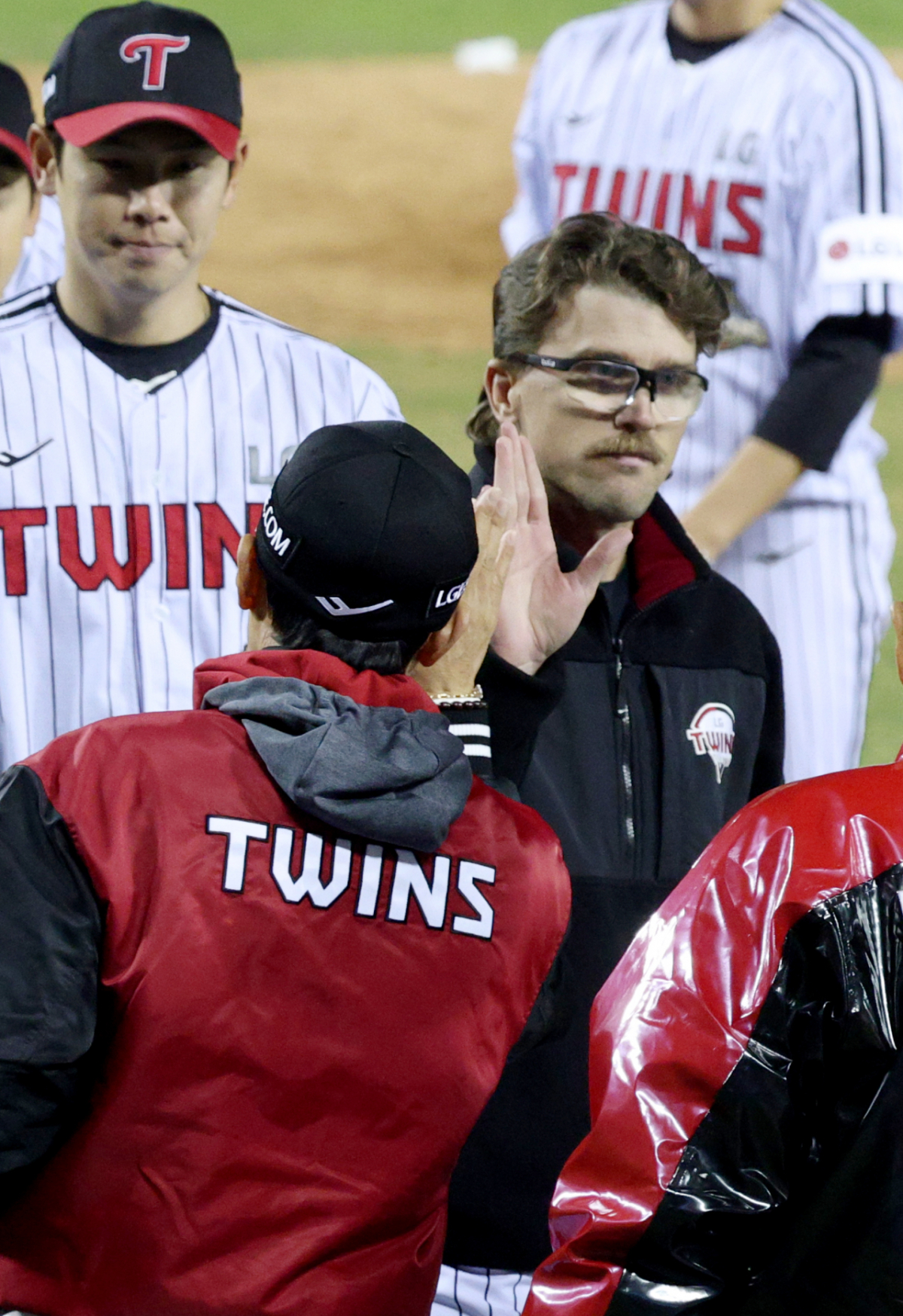 2026 신한 SOL KBO리그 LG 트윈스와 KIA 타이거즈의 경기가 2일 서울 잠실야구장에서 열렸다. LG 트윈스는 KIA 타이거즈에 2-1로 승리했다. 웰스를 비롯한 LG 선수들은 승리 후 염경엽 감독과 기쁨을 나눴다.
