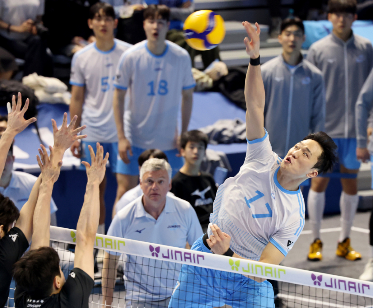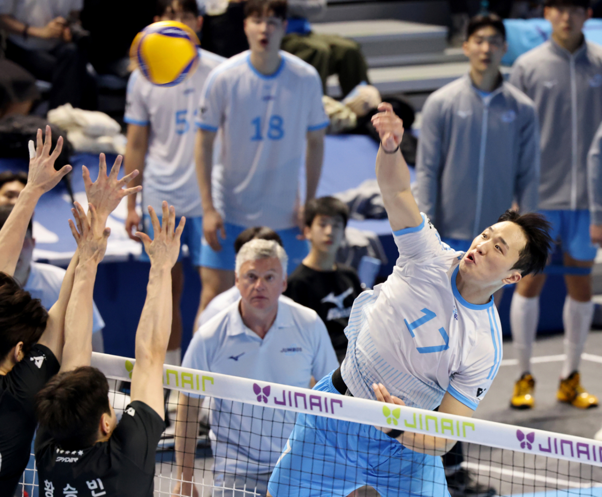 대한항공 임동혁이 3일 계양체육관에서 열린 진에어 2025-2026 V리그 챔피언결정전 대한항공과 현대캐피탈 경기에서 공격을 성공하고 있다. 2026.04.03.