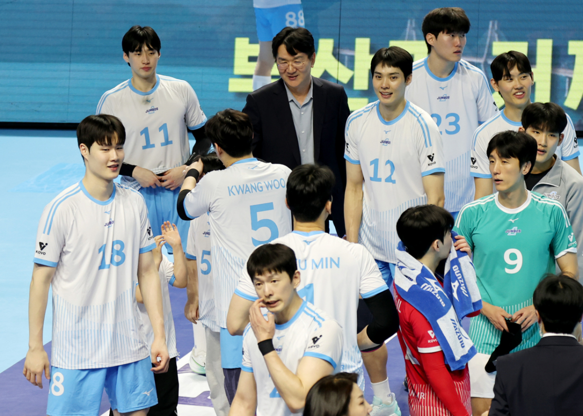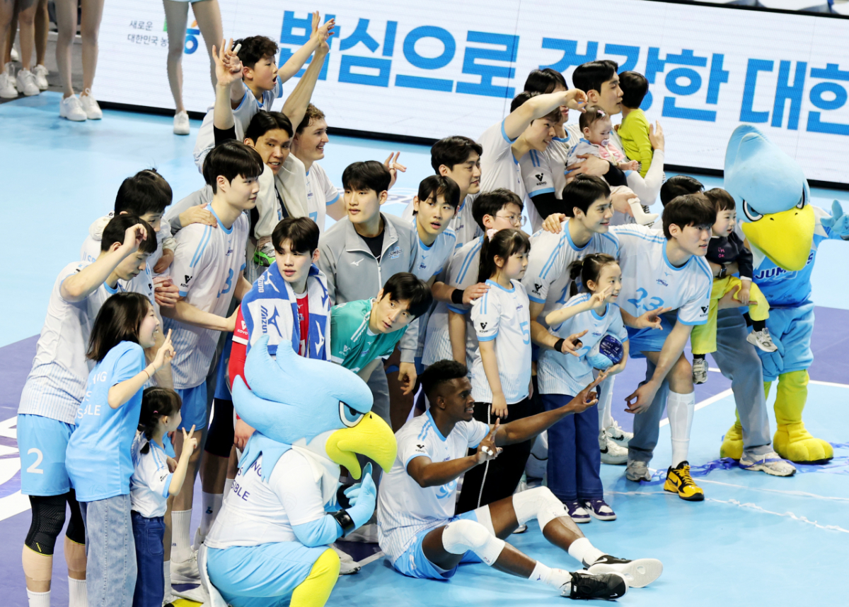조원태 KOVO총재도 축하를 위해 코트로 나서고