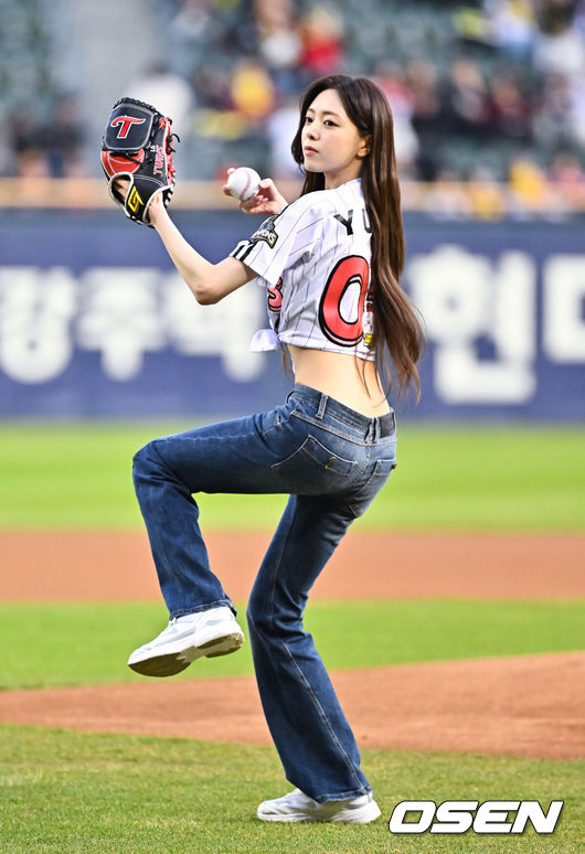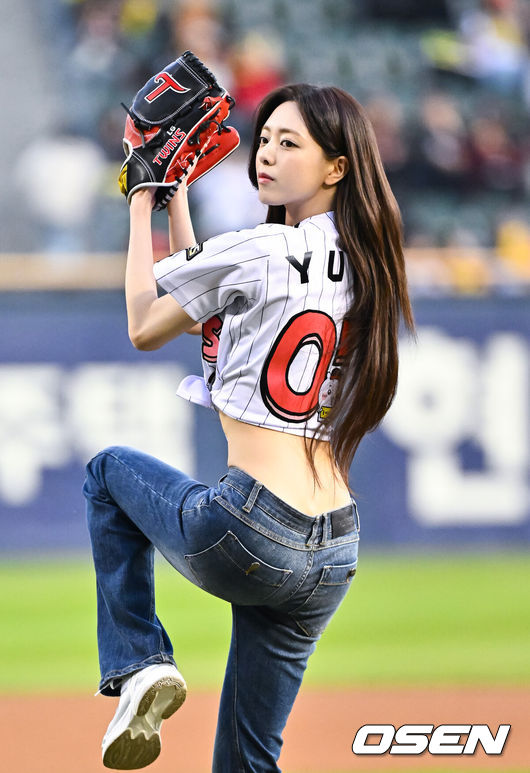 LG는 선발 라클란 웰스가 6이닝 1실점 QS 호투를 했고, 이후 필승조가 무실점으로 막아 2-1 한 점 차 승리를 거뒀다. 이틀 연속 ‘아이돌 시구=승리 공식’이 이어졌다. 유나와 김채연은 나란히 LG 유니폼 상의를 리폼해 개미 허리를 내보이는 패션과 청바지 차림으로 멋진 시구를 보여줬다