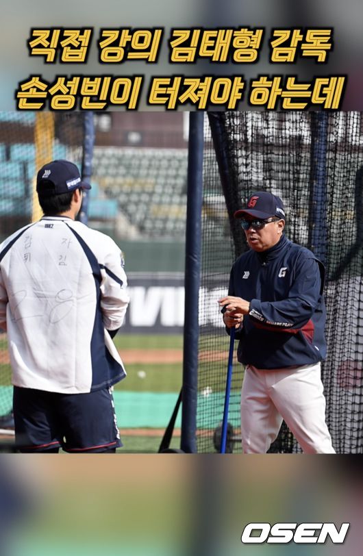 3일 부산 사직야구장에서 2026 신한 SOL KBO 리그 롯데 자이언츠와 SSG 랜더스의 경기가 열렸다. 롯데 자이언츠 김태형 감독이 손성빈에게 직접 타격 조언을 했다. 김태형 감독은 손성빈이 터져야 한다고 말했다.