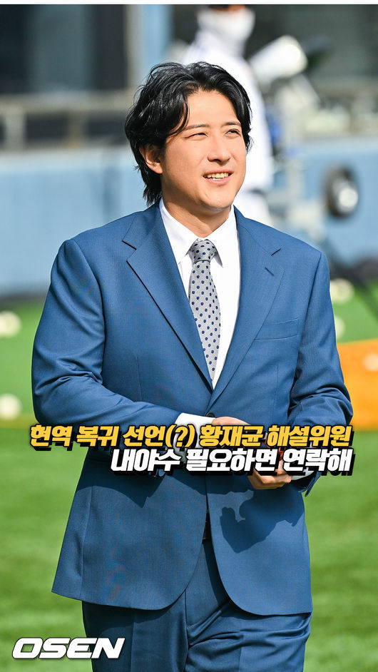 경기 앞서 티빙 해설위원으로 경기장을 찾은 황재균이 김인태 등 두산 선수들과 만남을 영상으로 담았다. 2026.04.02 / [email protected]