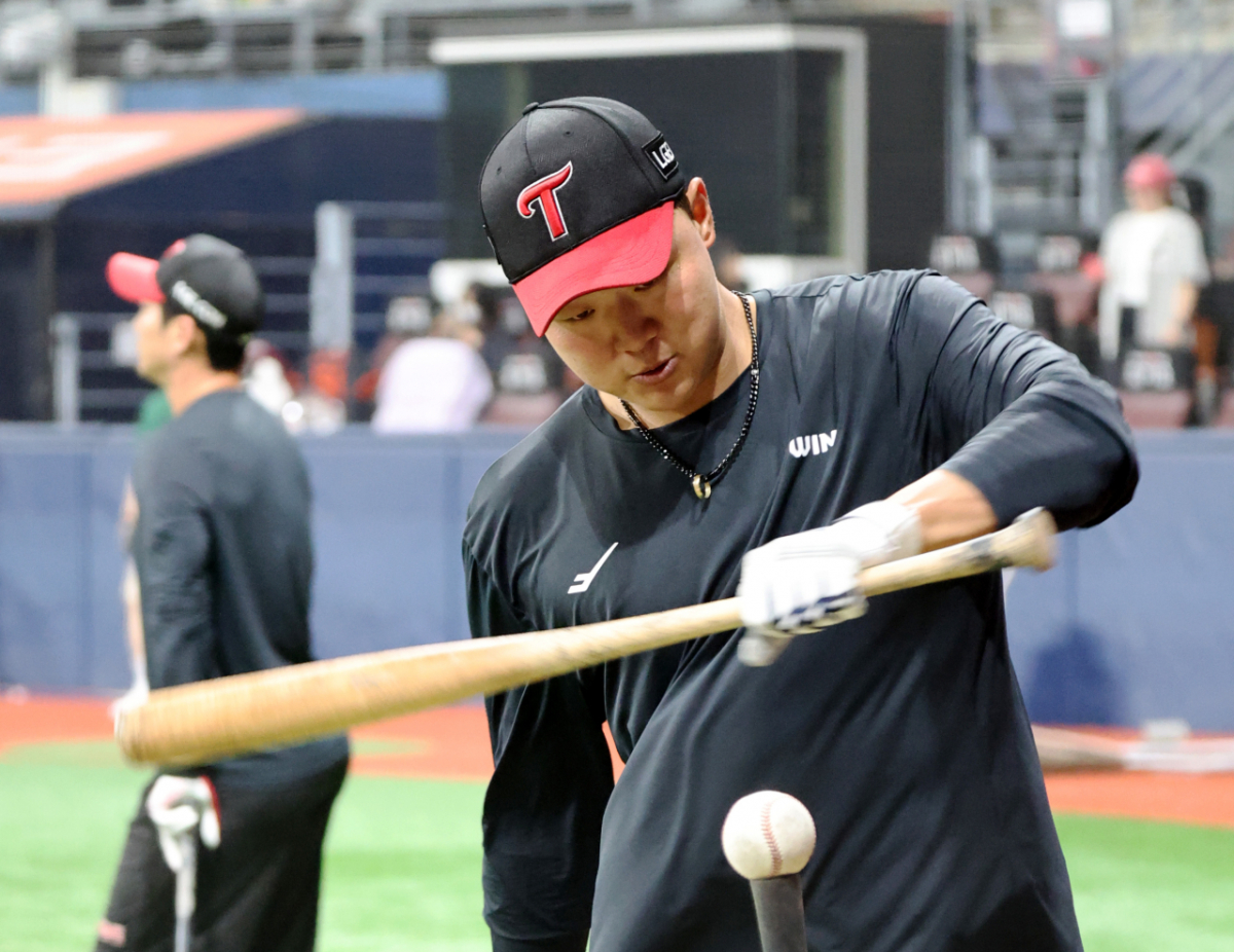 이재원이 4일 고척스카이돔에서 열린 2026KBO리그 키움히어로즈와 LG트윈스 경기를 앞두고 타격훈련을 했다. 그는 타격 밸런스를 유지하기 위해 다양한 방법으로 타격을 했다. 이재원은 '잠실빅보이'로 불렸다. '잠실빅보이' 이재원이 4일 고척스카이돔에서 열린 2026KBO리그 키움히어로즈와 LG트윈스 경기를 앞두고 타격훈련을 하고 있다. 타격밸런스를 유지하기위해 다향한 방법으로 타격을 하고 있어 눈길을 끈다. 2026.04.03. 독자들의 PICK! 동서와 갈등→파혼 2번 아내..."조카는 남편 아이" 의심 충격 "남성 의사가 은밀한 곳 봤잖아" 이혼 선언…산부인과서 난동 "솔로몬도 못 풀어"...쌍둥이 형제와 관계 후 낳은 딸, 친부는 누구? "자기야" 댄스강사 그놈, 여친만 8명?..."교통사고 났어" 2억 뜯었다