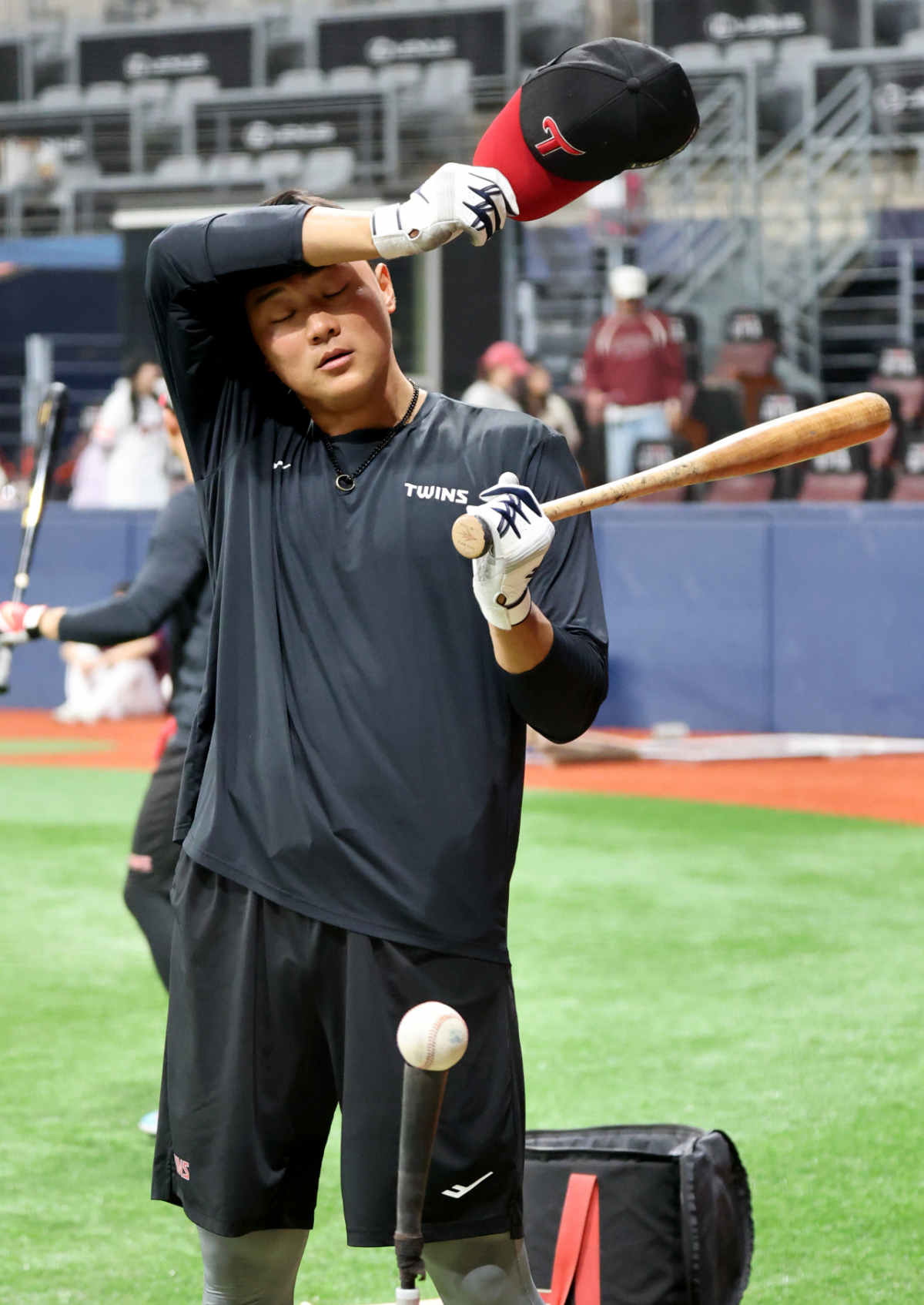 이재원이 4일 고척스카이돔에서 열린 2026KBO리그 키움히어로즈와 LG트윈스 경기를 앞두고 타격훈련을 했다. 그는 타격 밸런스를 유지하기 위해 다양한 방법으로 타격을 했다. 이재원의 훈련 모습이 눈길을 끌었다.