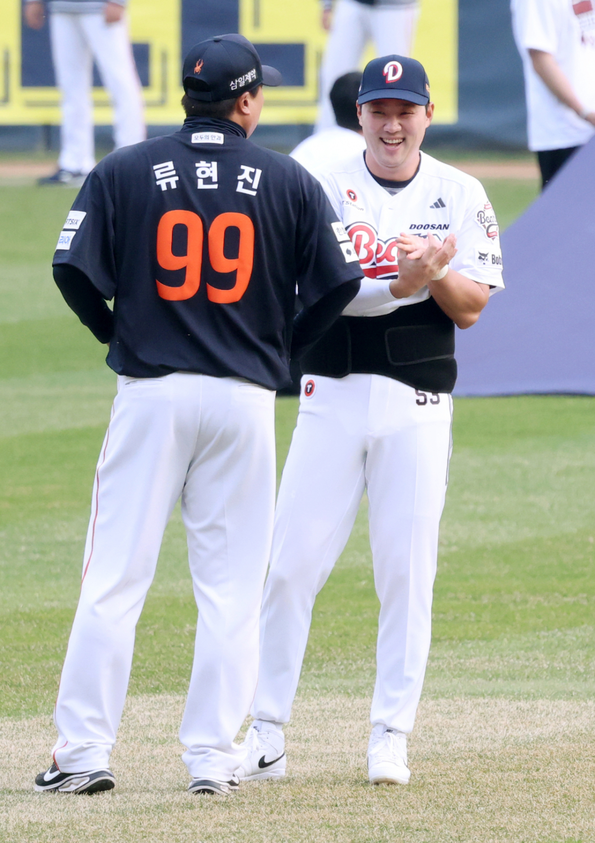 2026 신한 SOL KBO리그 두산 베어스와 한화 이글스의 경기가 3일 서울 잠실야구장에서 열렸다. 한화 류현진과 두산 양석환이 외야에서 만났다. 이들은 대화를 나누었다. 2026 신한 SOL KBO리그 두산 베어스 대 한화 이글스 경기가 3일 서울 잠실야구장에서 열렸다. 한화 류현진과 두산 양석환이 외야에서 만나 대화를 나누고 있다. 독자들의 PICK! 동서와 갈등→파혼 2번 아내..."조카는 남편 아이" 의심 충격 "남성 의사가 은밀한 곳 봤잖아" 이혼 선언…산부인과서 난동 "솔로몬도 못 풀어"...쌍둥이 형제와 관계 후 낳은 딸, 친부는 누구? "자기야" 댄스강사 그놈, 여친만 8명?..."교통사고 났어" 2억 뜯었다