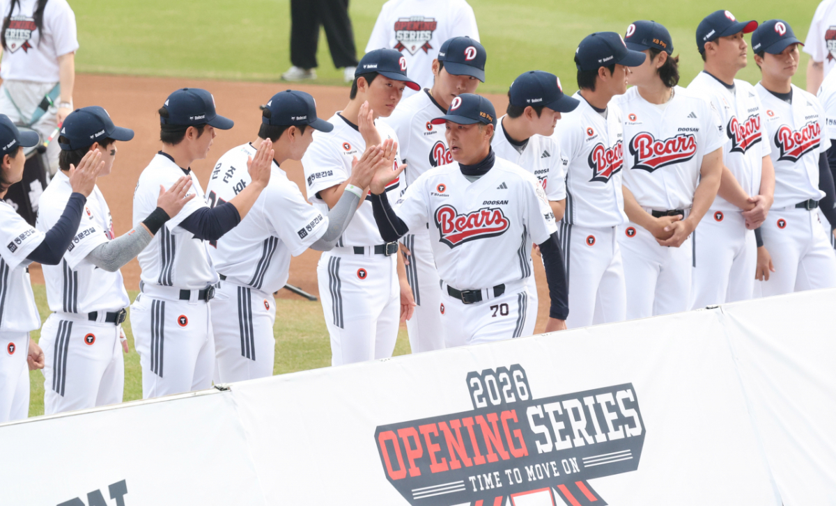 2026 신한 SOL KBO리그 두산 베어스와 한화 이글스의 경기가 3일 서울 잠실야구장에서 열렸다. 두산 김원형 감독이 개막 행사에서 팬들의 환호를 받으며 입장했다. 김원형 감독은 '허슬두 2026 스타트'라는 문구와 함께 등장했다. 2026 신한 SOL KBO리그 두산 베어스 대 한화 이글스 경기가 3일 서울 잠실야구장에서 열렸다. 두산 김원형 감독이 개막 행사에서 팬들의 환호를 받으며 입장하고 있다. 독자들의 PICK! 동서와 갈등→파혼 2번 아내..."조카는 남편 아이" 의심 충격 "남성 의사가 은밀한 곳 봤잖아" 이혼 선언…산부인과서 난동 "솔로몬도 못 풀어"...쌍둥이 형제와 관계 후 낳은 딸, 친부는 누구? "자기야" 댄스강사 그놈, 여친만 8명?..."교통사고 났어" 2억 뜯었다
