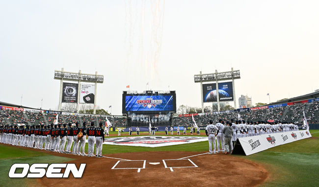 3일 오후 서울 잠실구장에서 2026 신한은행 SOL Bank KBO리그 두산 베어스와 한화 이글스의 경기가 진행됐다. 이날 두산은 플렉센을, 한화는 에르난데스를 선발투수로 내세웠다. 두산 홈개막 식전 행사가 진행됐다.