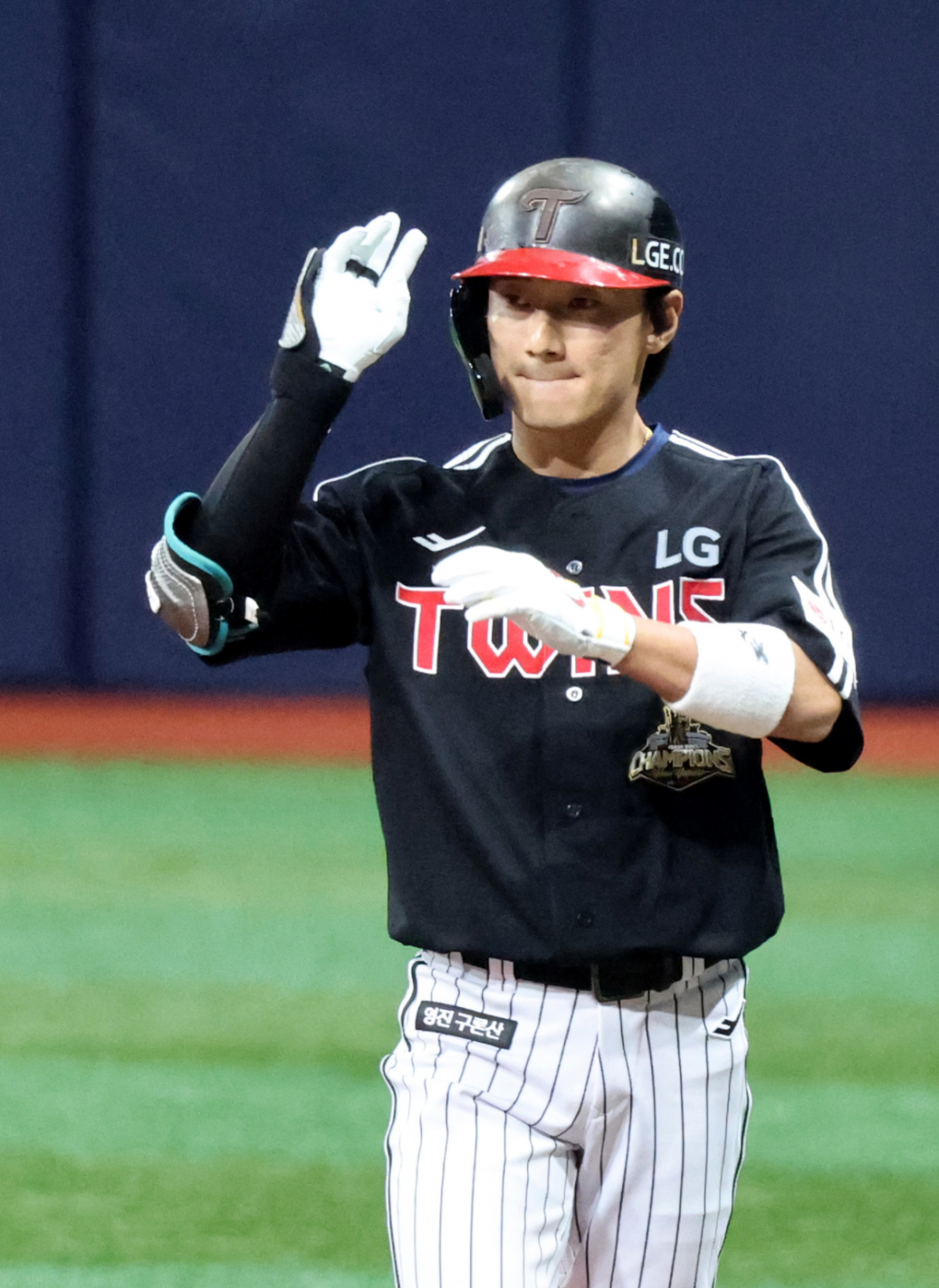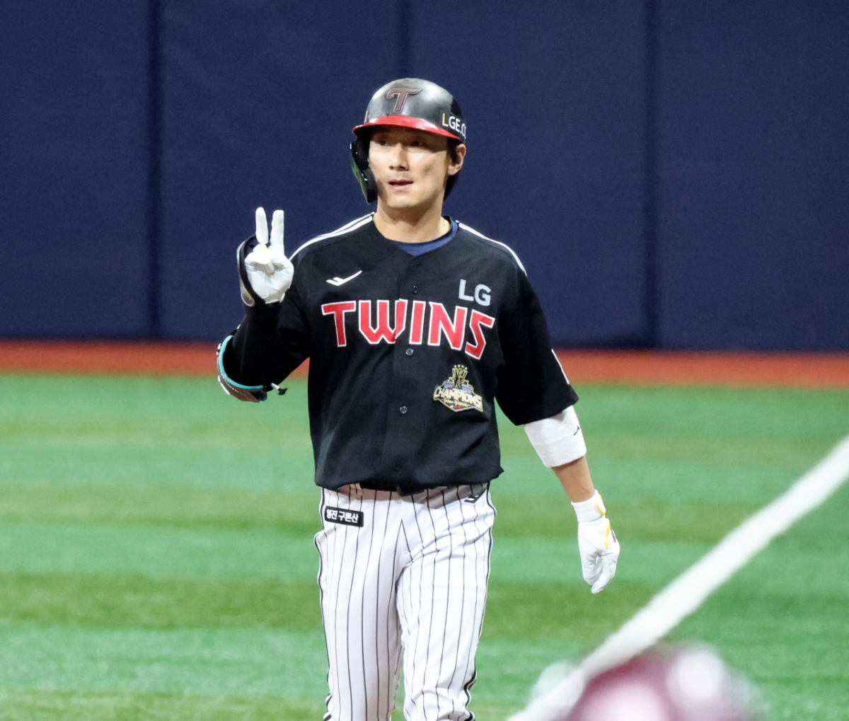 LG 신민재가 4일 여척스카이돔에서 열린 2026KBO리그 키움히어로즈와 LG트윈스 경기 1회초 안타로 출루하고 있다. 202604.03.