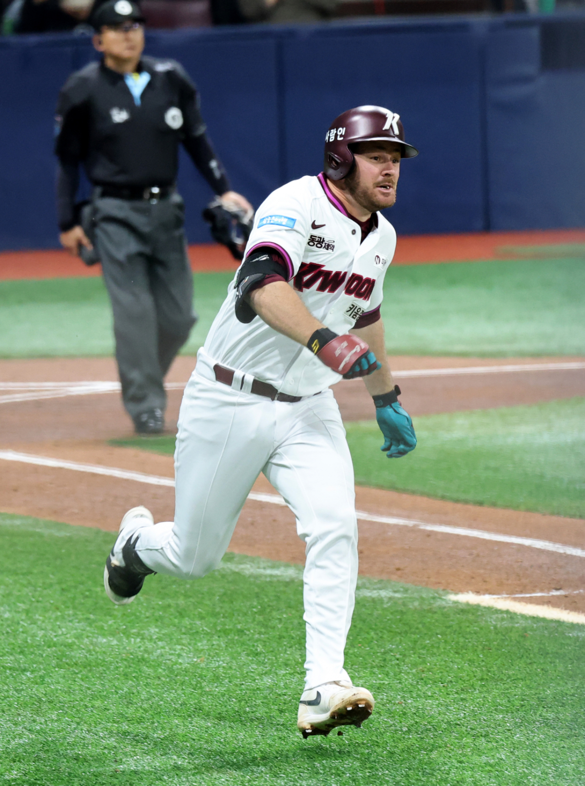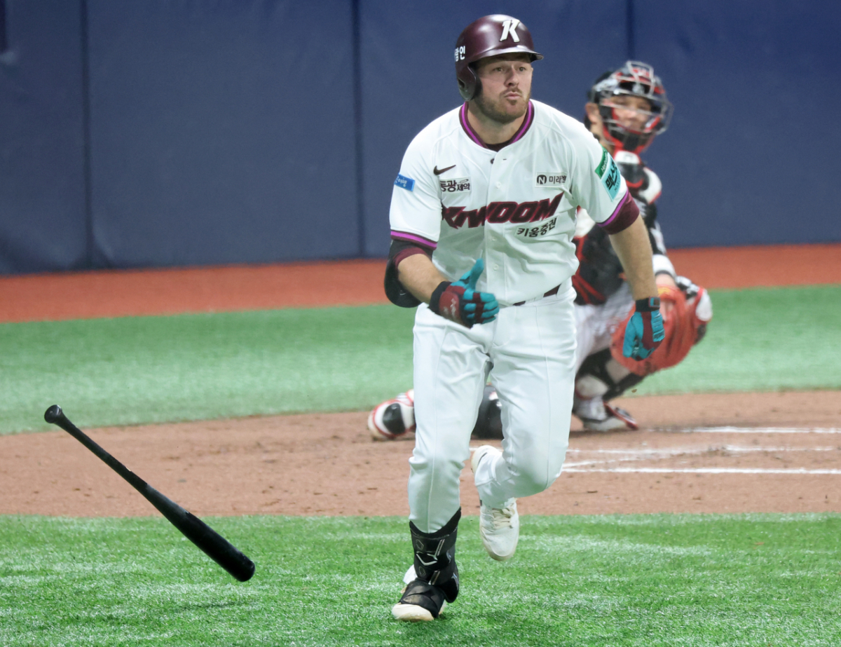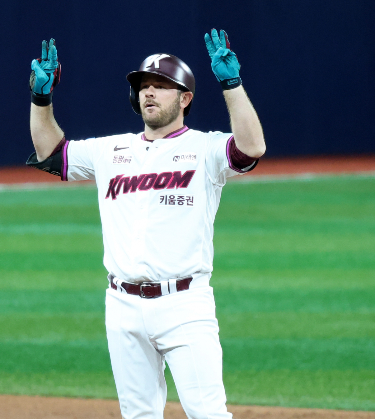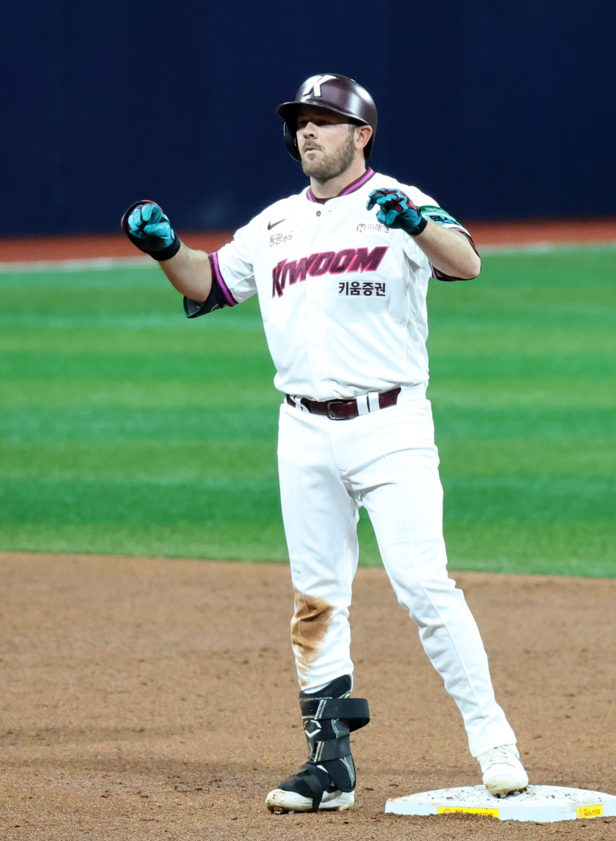 키움 1번타자 브룩스가 4일 여척스카이돔에서 열린 2026KBO리그 키움히어로즈와 LG트윈스 경기 3회말 무사 1루에서 2루타로 출루하고 있다. 202604.03.