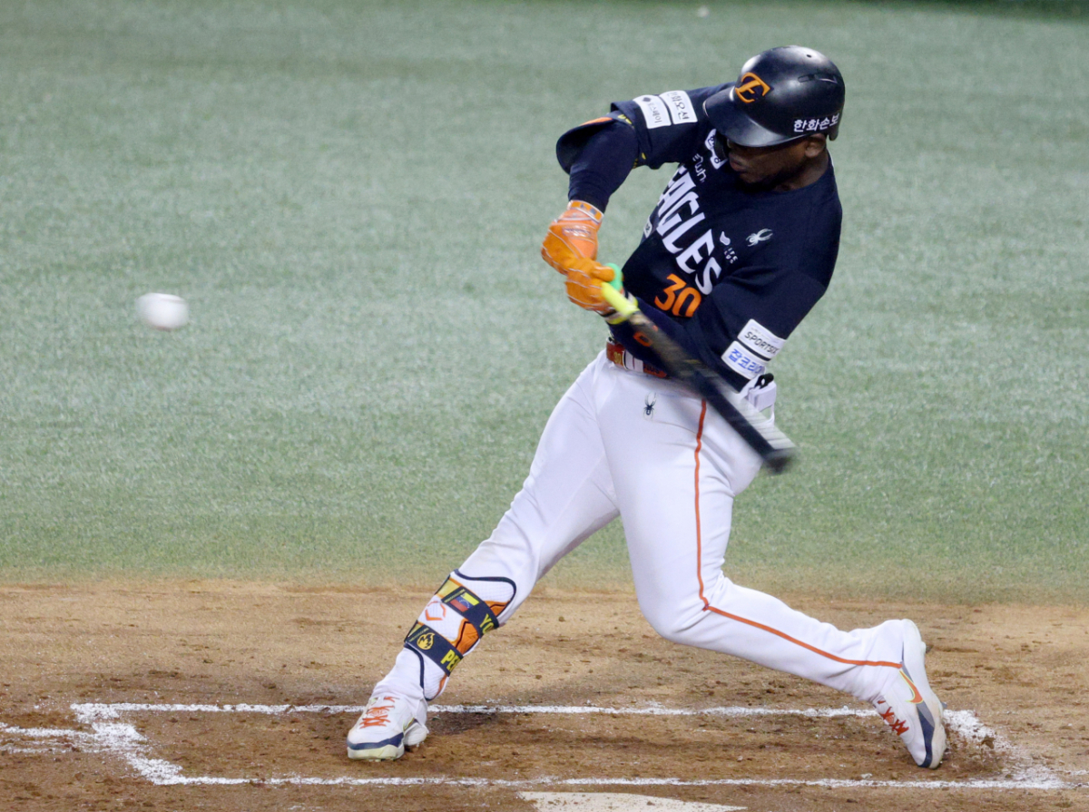 한화 페라자가 호쾌한 타격을 선보이고 있다