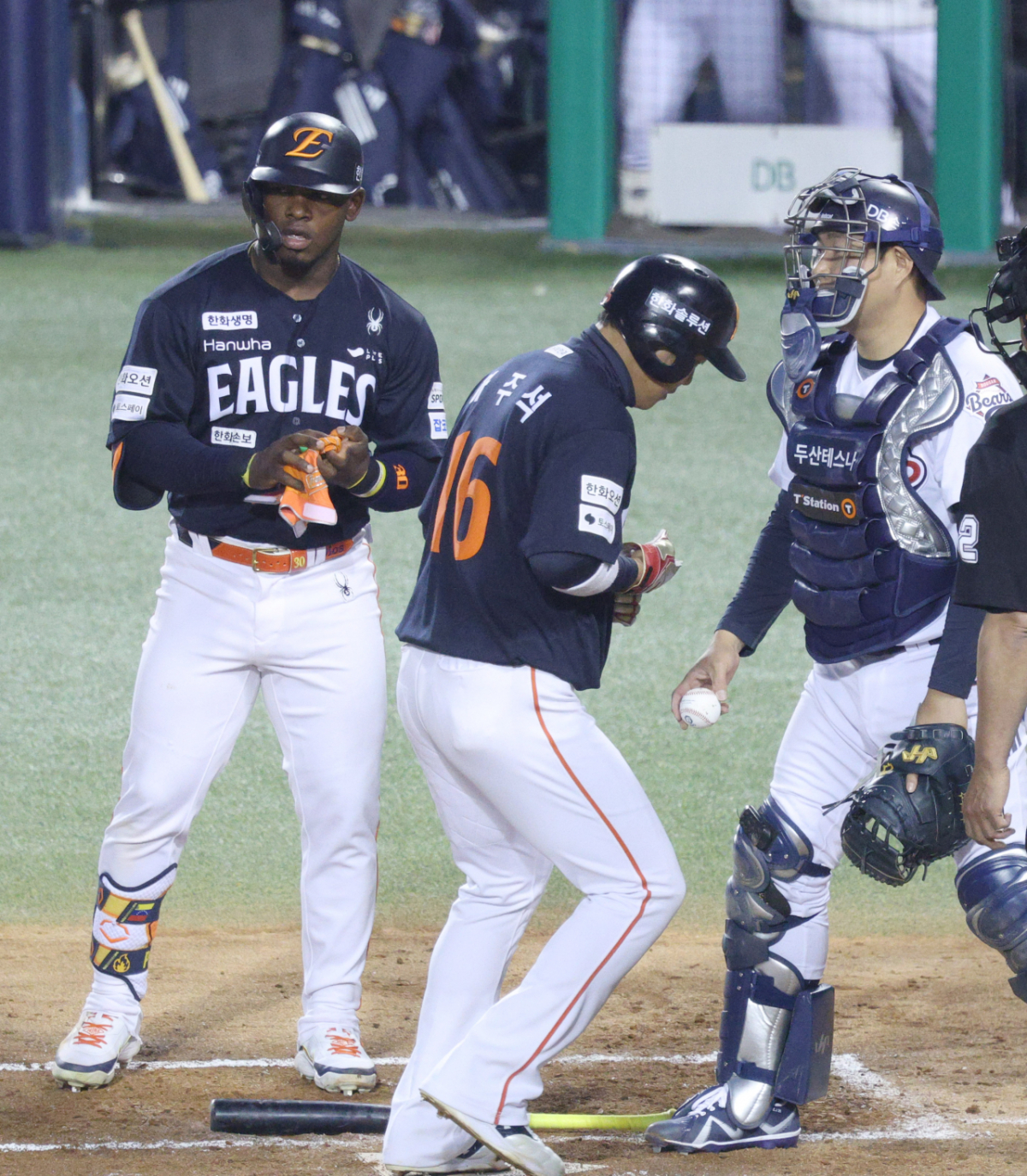 2026 신한 SOL KBO리그 두산 베어스와 한화 이글스의 경기가 3일 서울 잠실야구장에서 열렸다. 한화 페라자는 2회초 2사 만루 상황에서 밀어내기 볼넷을 얻어냈다. 이로 인해 3루 주자 하주석이 득점했다.