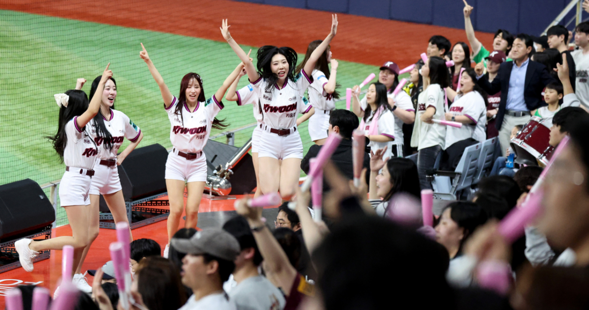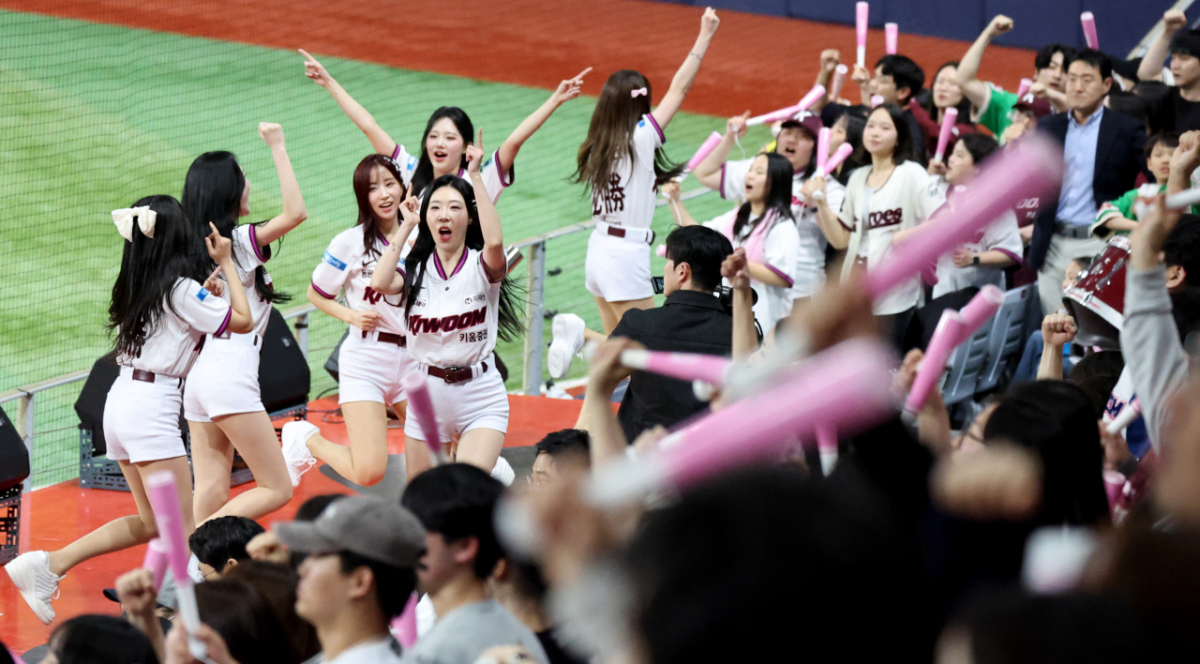 키움 치어리더 용경아가 4일 여척스카이돔에서 열린 2026KBO리그 키움히어로즈와 LG트윈스 경기에서 개막전 승리를 위해 열띤 응원을 펼치고 있다. 202604.03.
