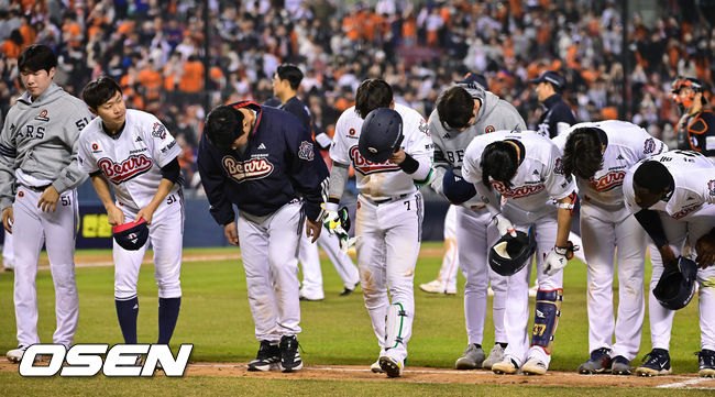 한화 이글스가 3일 서울 잠실구장에서 열린 2026 신한 SOL KBO리그 두산 베어스와의 시즌 첫 맞대결에서 11-6으로 승리했다. 한화는 타선의 힘을 앞세워 우여곡절 끝 3연패를 끊었다. 경기 종료 후 두산 선수들이 팬들에게 인사를 했다.