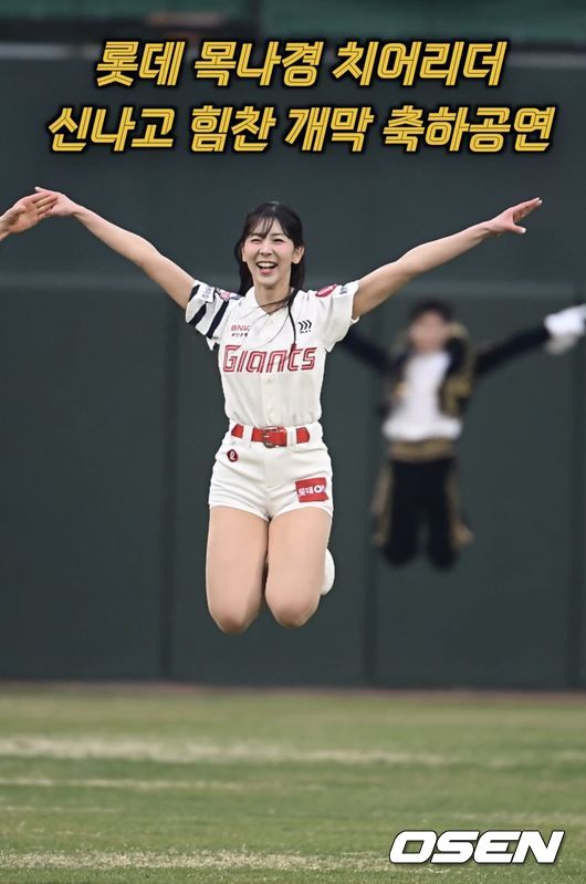 3일 부산 사직야구장에서 2026 신한 SOL KBO 리그 롯데 자이언츠와 SSG 랜더스의 경기가 열렸다. 롯데 자이언츠 홈 개막전 경기에서 목나경 치어리더가 개막 축하 공연을 했다. 목나경 치어리더는 신나고 힘찬 공연을 선보였다.