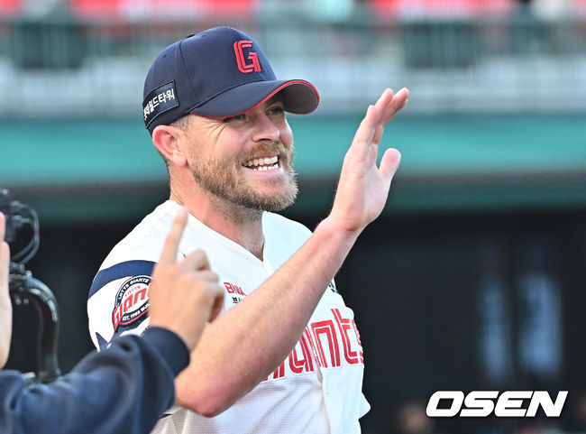 롯데 자이언츠 선발 투수 비슬리가 3회초 2사 만루 SSG 랜더스 조형우를 우익수 플라이로 잡고 기뻐하고 있다. 2026.04.04 / [email protected]