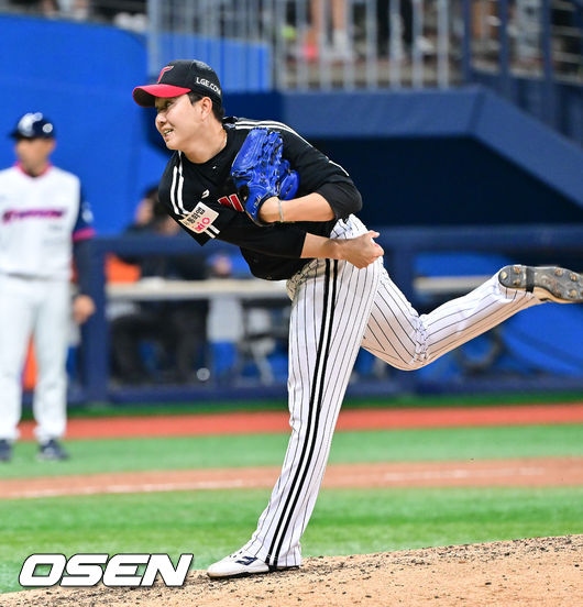 9회말 LG 마무리 투수 유영찬이 역투하고 있다. 2026.04.04 / [email protected]