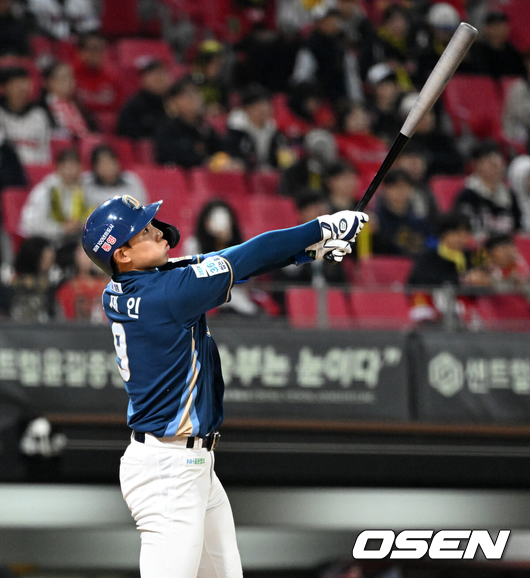 첫 타석에서 바로 응답했다. 2-0으로 앞선 2회초 첫 타자로 나서 KIA 선발 이의리의 몸쪽 슬라이더를 통타해 110m짜리 좌월솔포로를 터트렸다. 지난 1일 롯데와의 창원경기에서 2-4로 뒤진 8회말 극적인 동점투런홈런을 날린데 이어 두 번째 안타도 홈런으로 만들어냈다.