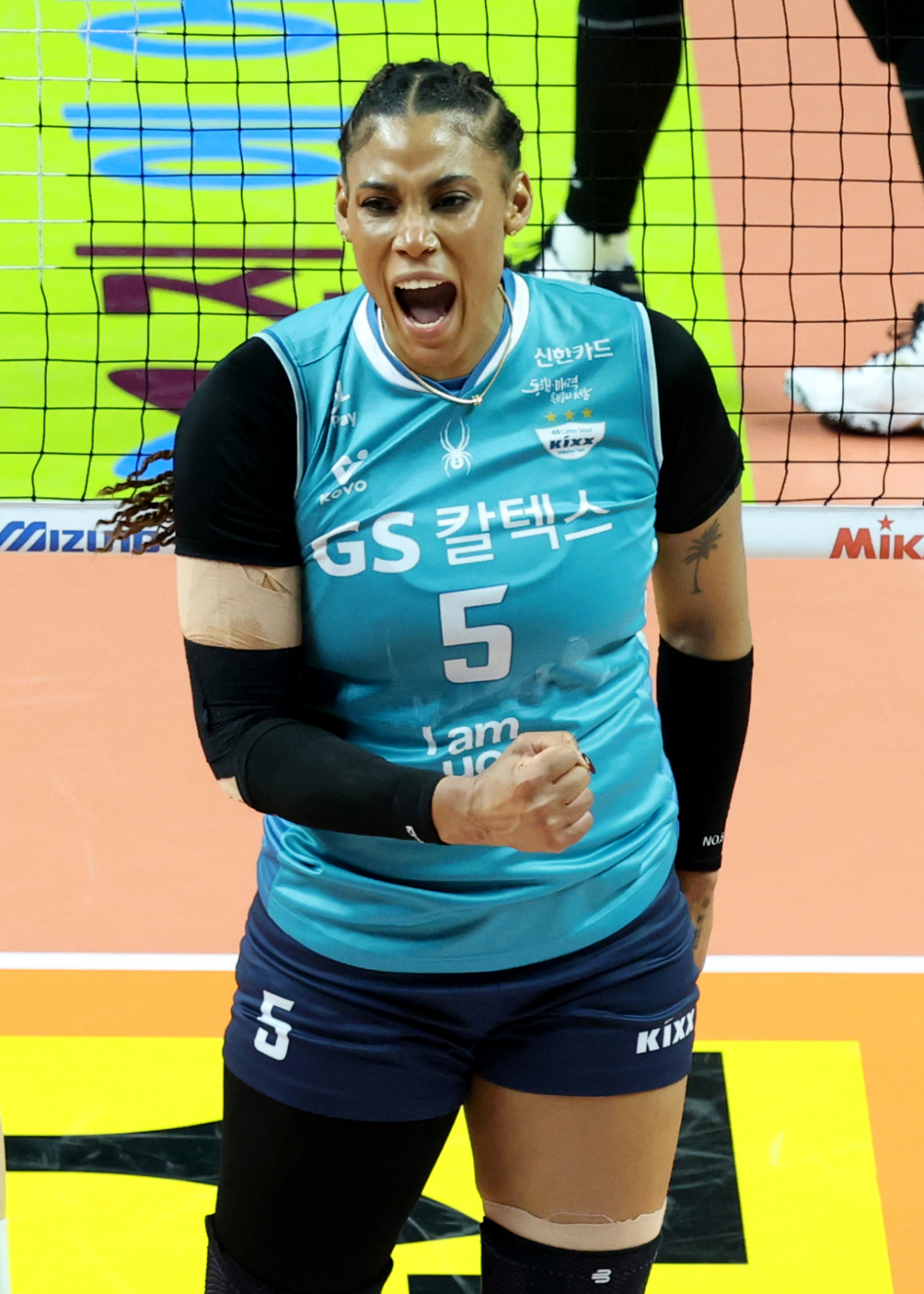 GS칼텍스 실바가 결정적인 공격 성공 후 환호하고 있다.