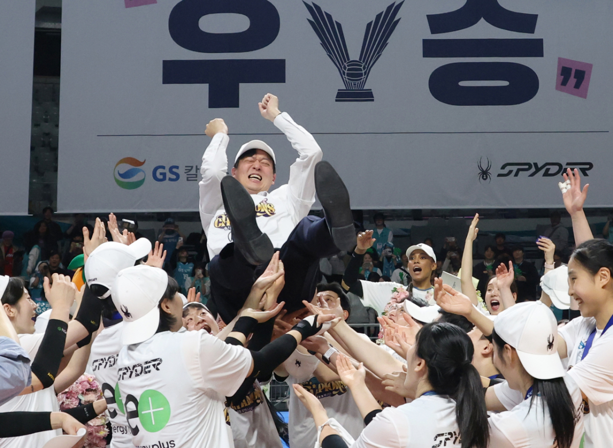 2025-2026 V-리그 포스트시즌 여자 프로배구 챔피언 결정전 3차전 GS칼텍스 대 한국도로공사 경기가 5일 서울 장충체육관에서 열렸다. GS칼텍스가 우승을 차지했다. GS칼텍스는 우승 후 이영택 감독을 헹가래쳤다.