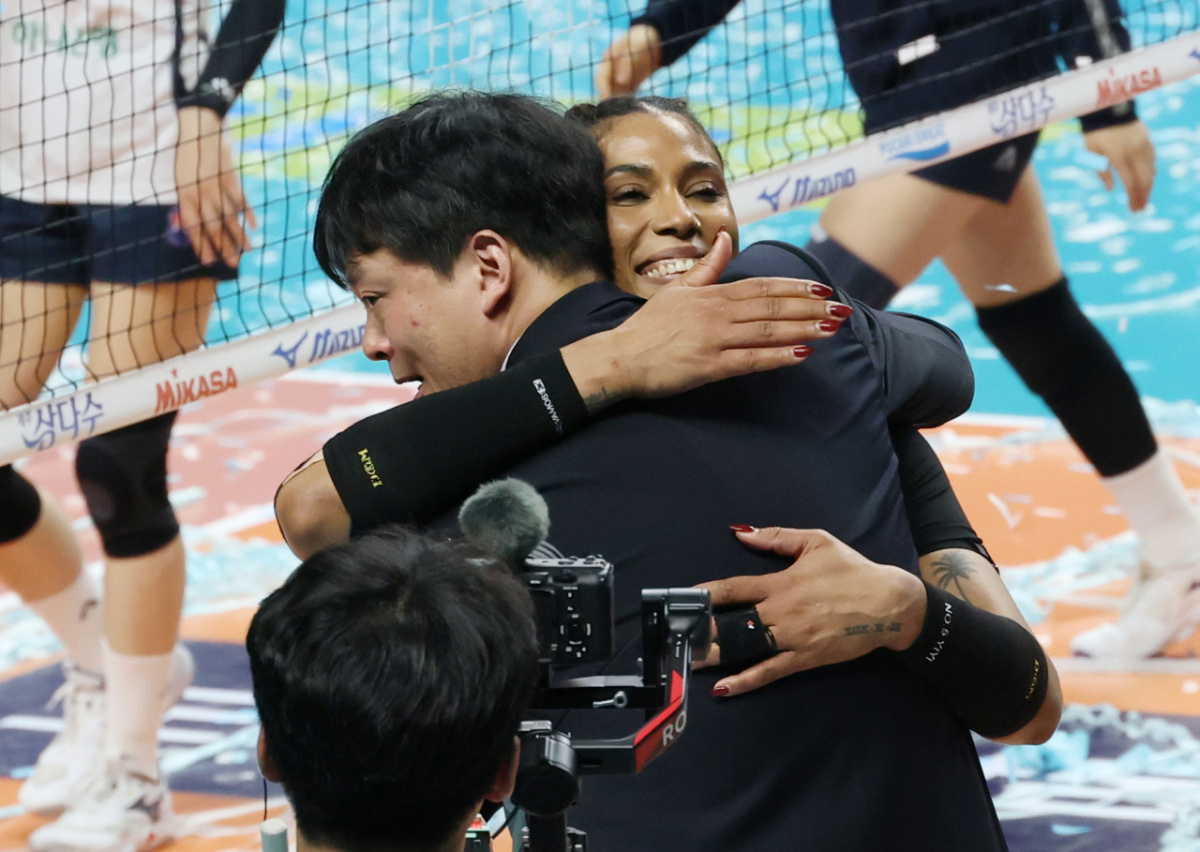 2025-2026 V-리그 포스트시즌 여자 프로배구 챔피언 결정전 3차전 GS칼텍스 대 한국도로공사 경기가 5일 서울 장충체육관에서 열렸다. GS칼텍스 이영택 감독이 우승을 차지했다. 이영택 감독은 우승 후 실바와 기쁨을 나눴다.