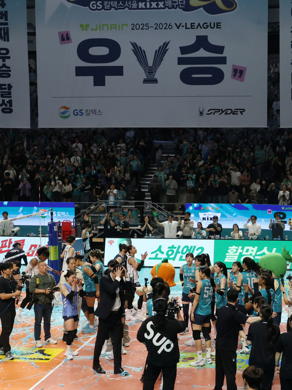 2025-2026 V-리그 포스트시즌 여자 프로배구 챔피언 결정전 3차전 GS칼텍스 대 한국도로공사 경기가 5일 서울 장충체육관에서 열렸다. GS칼텍스가 우승을 차지했다. 이영택 감독과 선수단은 우승 후 기쁨을 나눴다. 2025-2026 V-리그 포스트시즌 여자 프로배구 챔피언 결정전 3차전 GS칼텍스 대 한국도로공사 경기가 5일 서울 장충체육관에서 열렸다. GS칼텍스 이영택 감독을 비롯한 선수단이 우승을 차지한 후 기쁨을 나누고 있다. 독자들의 PICK! 윤미래, 뒤늦게 알려진 사망 소식..."긴 여행 떠나" "군살 하나 없네"...산다라박, 과감한 비키니 '깜짝 뒤태' 눈길 신수지, 또 무슨 일?…"억울하고 황당한 일 당해" 의미심장 글 동서와 갈등→파혼 2번 아내..."조카는 남편 아이" 의심 충격