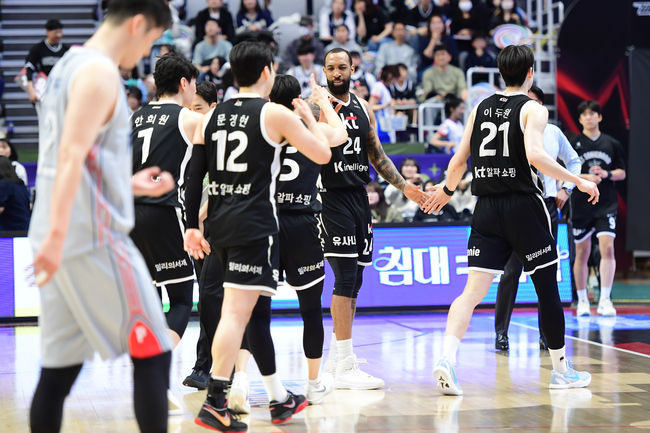 KT에 경기 직전 안타까운 소식이 전해졌다. 2경기차로 추격하고 있던 부산 KCC와 고양 소노가 모두 승리를 거두며 6강 플레이오프 진출을 확정 지었기 때문.
