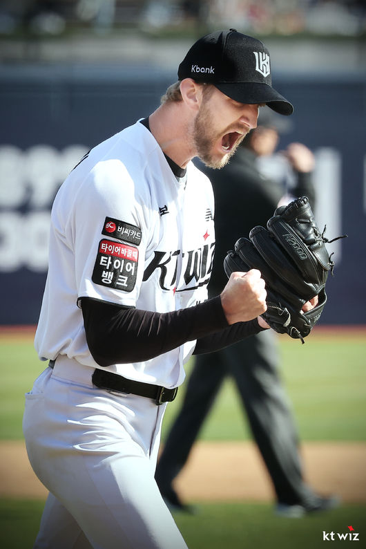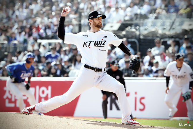 [OSEN=수원, 이후광 기자] 야구의 본고장 미국에서도 보지 못한 9명 전원 좌타자 라인업. 프로야구 KT 위즈 외국인투수는 어떻게 이들은 무실점으로 틀어막았을까.