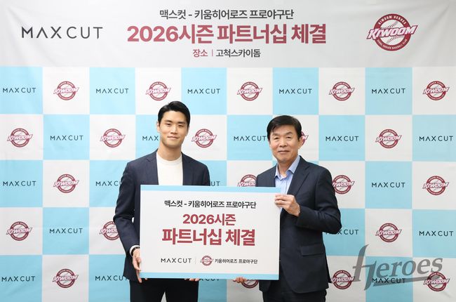 키움 히어로즈는 6일 건강기능식품 맥스컷과 2026시즌 파트너십 계약을 체결했다. 이번 계약으로 2026시즌 동안 키움 히어로즈 유니폼 왼쪽 어깨에 맥스컷 광고 패치를 부착하고 외야 펜스에도 브랜드 광고를 노출할 예정이다. 키움 히어로즈 위재민 대표이사는 이번 파트너십이 양사 모두 발전하는 계기가 되기를 바란다고 말했다.