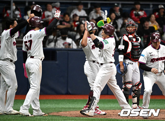 키움은 9회말 김건희의 중전 안타, 박주홍의 좌중간 안타, 대타 임지열이 우측 펜스 상단을 맞고 나오는 안타로 무사 만루를 만들었다.
