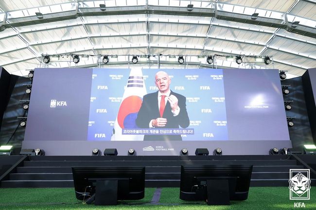 인판티노 회장도 영상으로 축사를 보냈다. 먼저 그는 "친애하는 대한축구협회장이자 나의 친구 정몽규 회장과 여러분, 천안의 코리아풋볼파크 개관을 진심으로 축하드린다"라고 말문을 열었다.