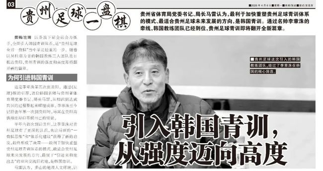 이에 오 감독은 "우리의 사명은 구이저우만의 청소년 축구 훈련 지침을 형성하고, 구이저우 축구에 적합한 전술 스타일을 찾는 것"이라고 포부를 밝혔다.