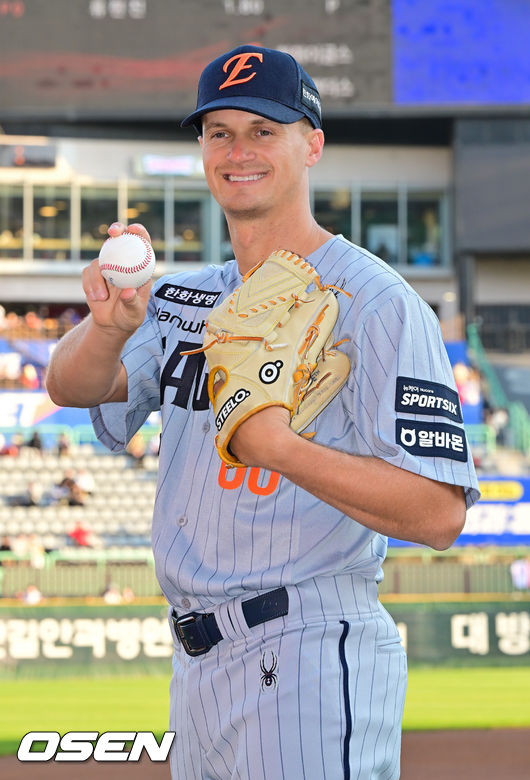 경기 앞두고 화이트 대신 새롭게 합류한 한화 외국인 선수 쿠싱이 포즈를 취하고 있다. 2026.04.07 / [email protected]