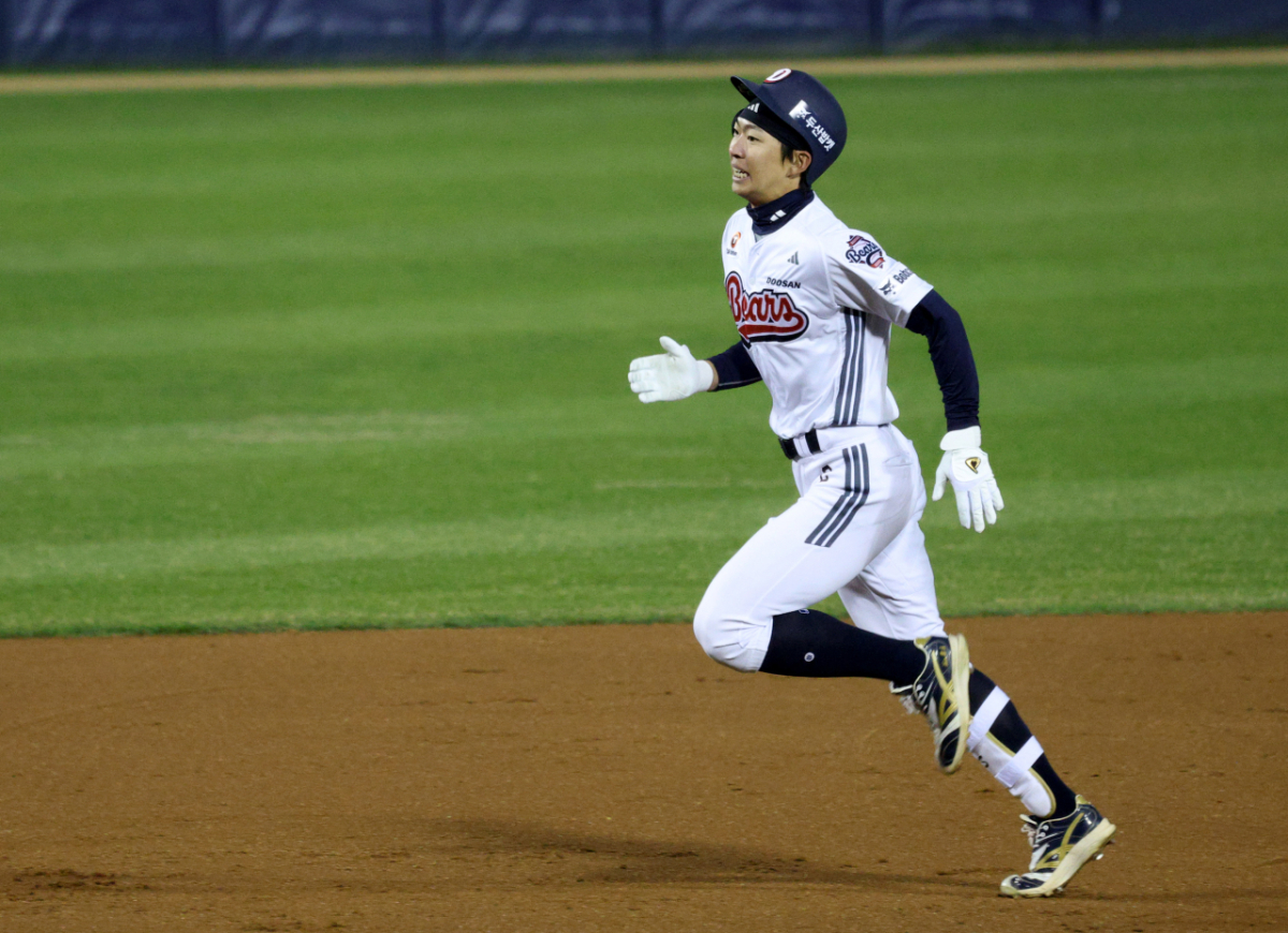 두산 김민석이 3회말 무사에서 중월 3루타를 날리고 질주하고 있다.