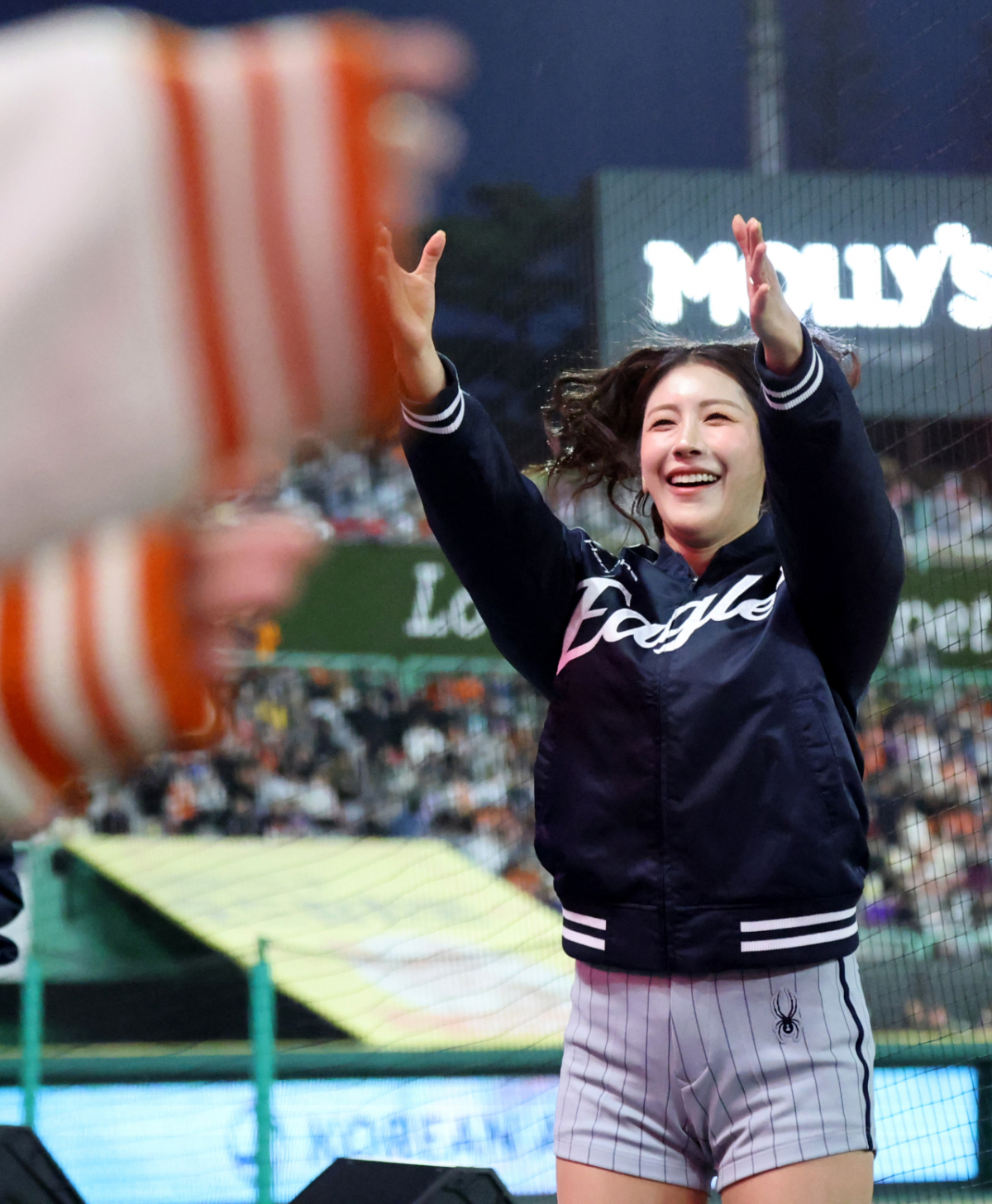 한편 3루에는 아내 김연정이 열렬히 그를 축하하고 있다.