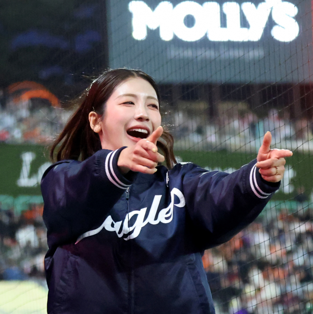 한화 하주석이 7일 랜더스필드에서 열린 2026KBO리그 한화이글스와 SSG랜더스 시즌 첫 경기 3회초 2사 만루에서 2타점 적시타를 터트렸다. 그는 적시타를 터트린 후 환호하며 3루 응원석을 향해 눈을 돌렸다. 3루에는 그의 아내 김연정이 열렬히 그를 축하하고 있었다.