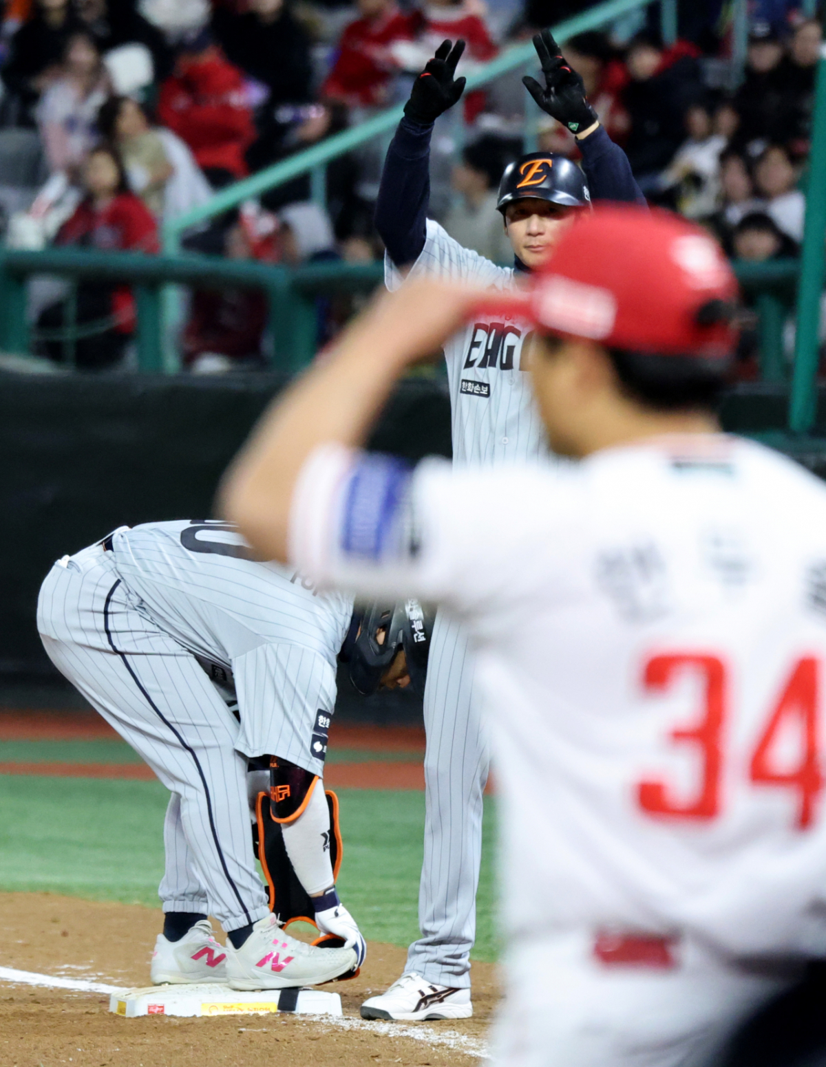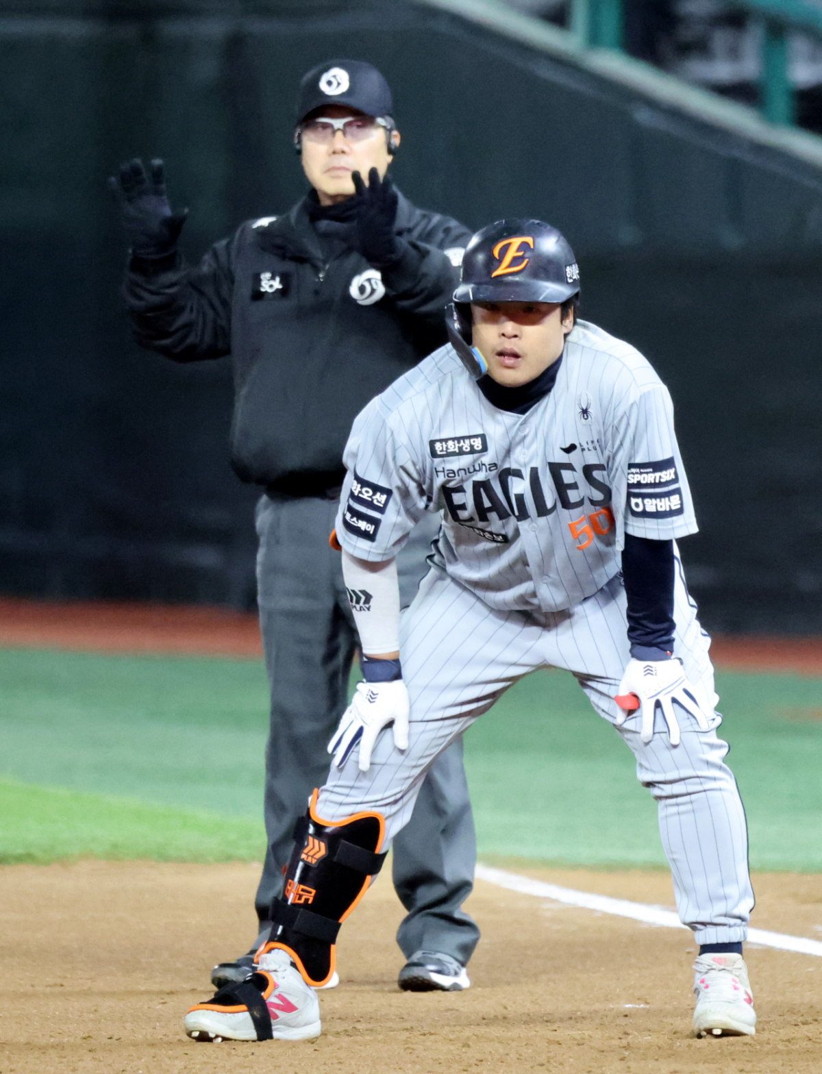 한화의 3번 타자 강백호가 7일 랜더스필드에서 열린 2026 KBO리그 한화이글스와 SSG랜더스의 시즌 첫 경기 9회초 1사 1,2루 상황에서 1타점 적시타를 쳤다. 강백호는 적시타로 출루한 후 교체 요청을 하며 더그아웃으로 향했다. 이 경기는 2026년 4월 7일에 진행되었다.