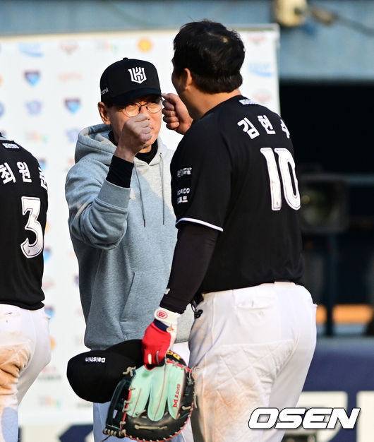 김현수가 선수들의 세세한 플레이를 모두 지켜보고 잘못된 지점이 있으면 그때 그때 바로 얘기하는 모습은 지난달 28일 잠실 LG 개막전에서 확인했다. 11-6으로 앞서던 8회말 무사 만루 협살 플레이 과정에서 한승택이 본헤드 플레이를 벌였다. 1루수였던 김현수가 바로 한승택의 미스를 지적하고 쓴소리를 하는 모습이 나왔다. 이강철 감독이 지적하기도 전에 김현수가 나선 것.