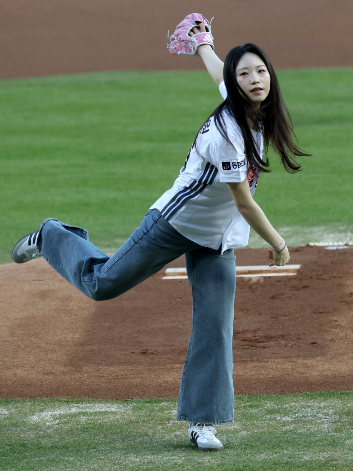 2026 신한 SOL KBO리그 두산 베어스와 키움 히어로즈 경기가 8일 서울 잠실야구장에서 열렸다. 스피드스케이팅 국가대표 임리원이 두산 승리 기원 시구를 했다. 임리원은 지난 2월 열린 2026 밀라노·코르티나담페초 동계 올림픽에 스피드스케이팅 대표팀 막내로 출전한 빙상 신예이다.