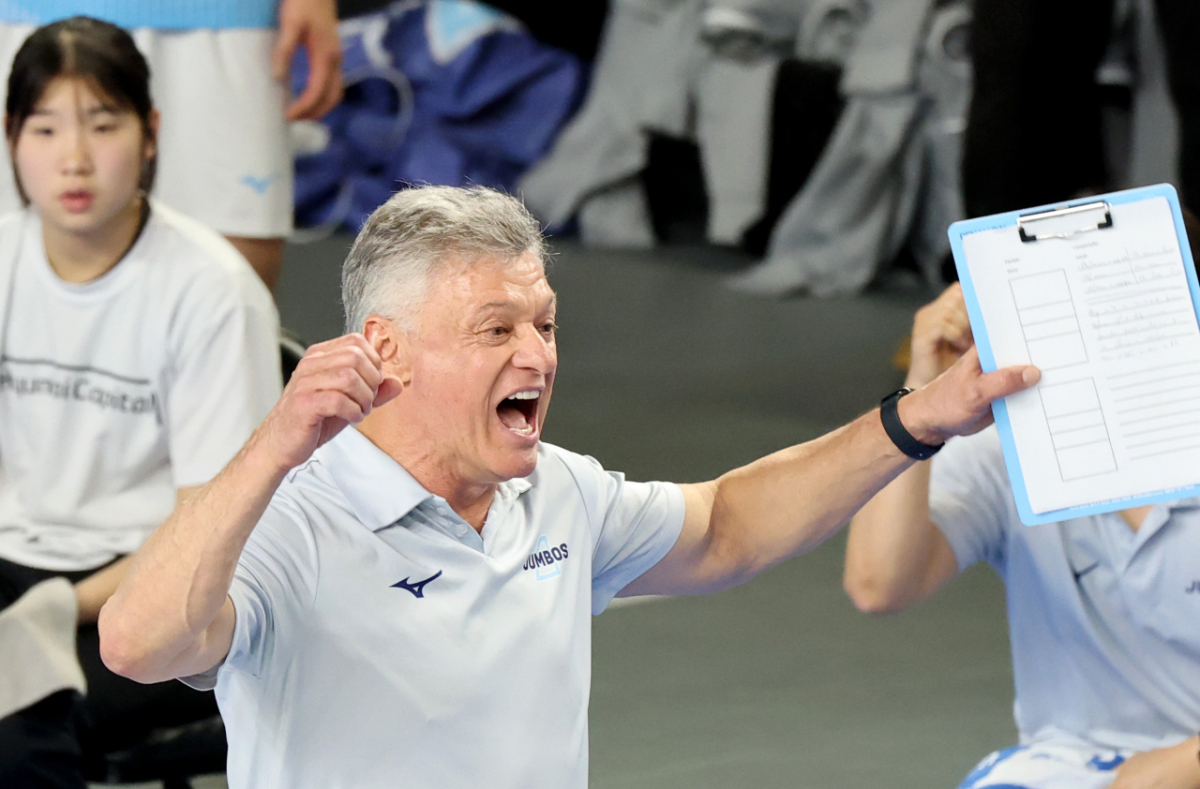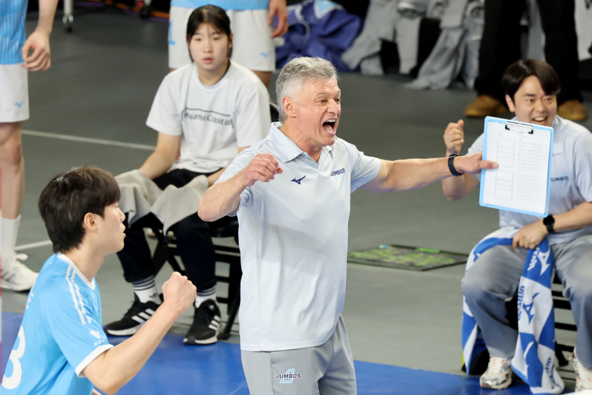 대한항공 헤난감독이 8일 천안유관순체육관에서 열린 진에어 2025-2026 V리그 챔피언결정전 대한항공과 현대캐피탈 4차전에서 득점에 환호하고 있다. 2026.04.08.