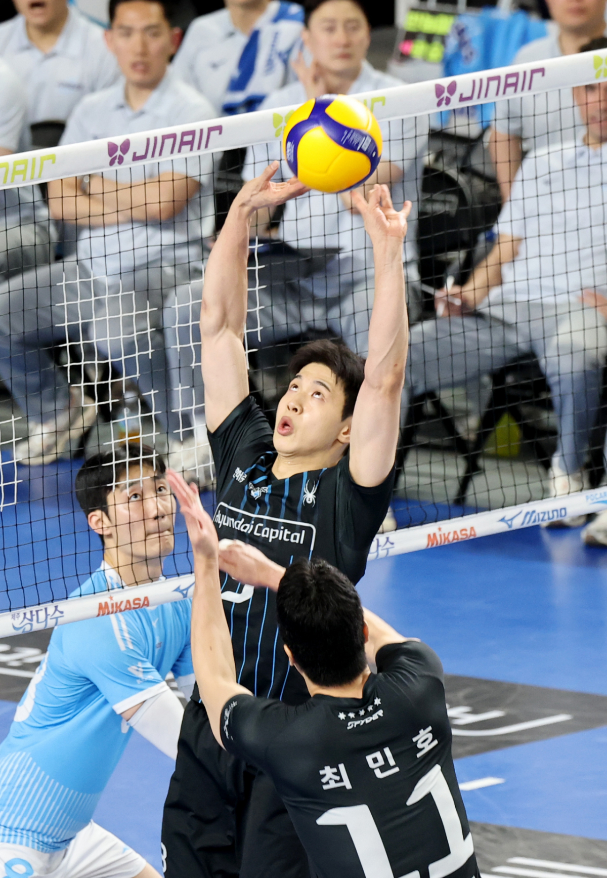 현대 황승빈이 8일 천안유관순체육관에서 열린 진에어 2025-2026 V리그 챔피언결정전 대한항공과 현대캐피탈 4차전에서 볼배급을 하고 있다. 2026.04.08.