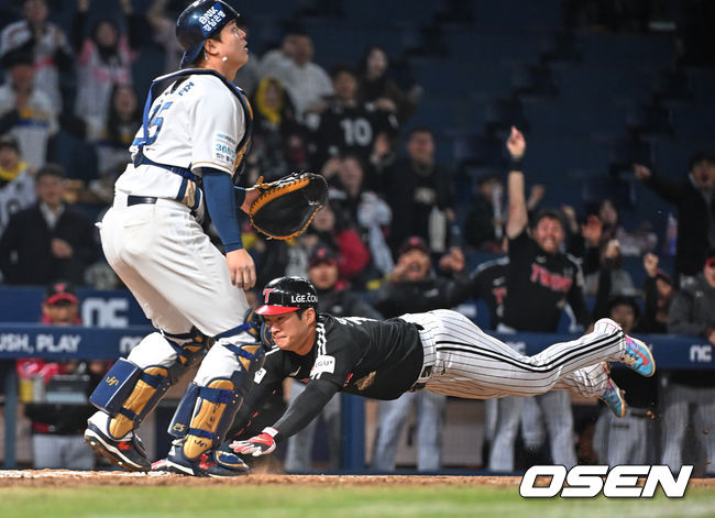 8일 창원NC파크에서 2026 신한 SOL KBO 리그 NC 다이노스와 LG 트윈스의 경기가 열렸다. LG 트윈스의 오지환이 8회초 2사 2루 상황에서 중견수 쪽 적시타를 쳤다. 오지환은 홈으로 쇄도하여 그라운드 홈런을 완성했다.
