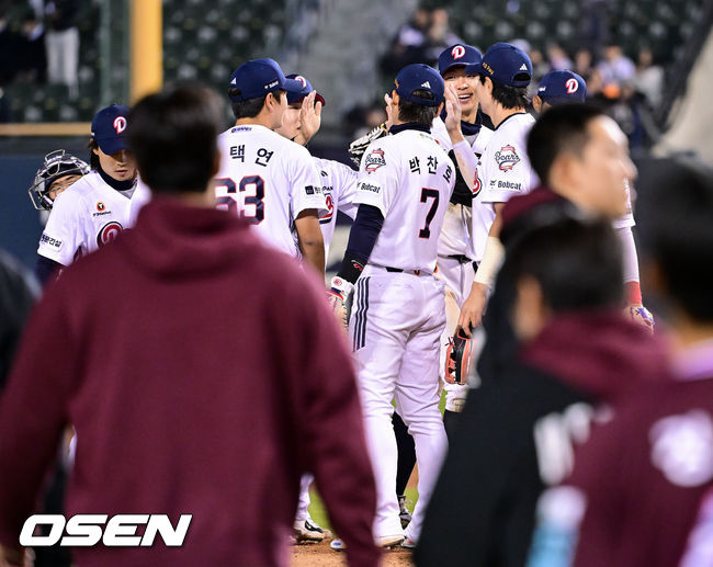 경기종료 후 두산 선수들이 승리의 기쁨을 나누고 있다. 2026.04.08 / [email protected]
