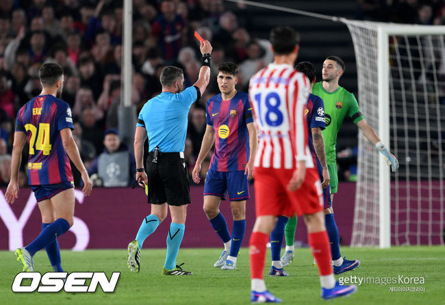 흐름이 완전히 뒤집힌 건 전반 막판이었다. 전반 42분 파우 쿠바르시가 줄리아노 시메오네를 막아세우는 과정에서 반칙을 범했다. 주심은 처음엔 옐로카드를 꺼냈다. 비디오 판독 뒤 판정이 바뀌었다. 쿠바르시는 퇴장을 당했다.