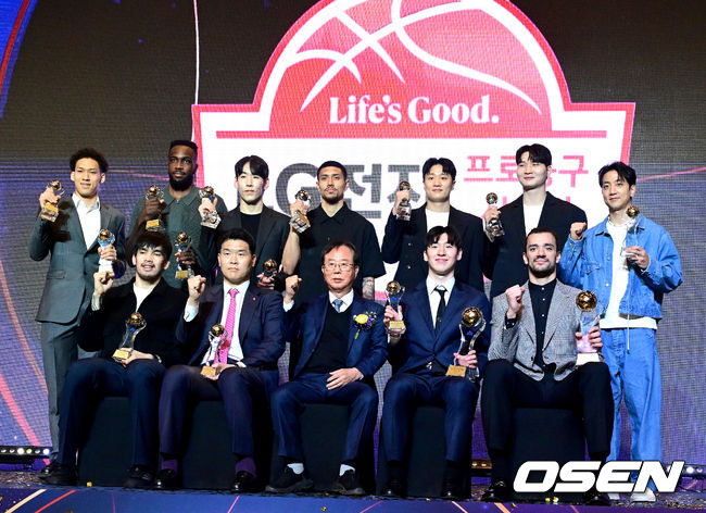 2025-2026 LG전자 프로농구 시상식이 9일 오후 서울 삼성동 그랜드 인터컨티넨탈 서울 파르나스에서 열렸다. 이번 시상식에서는 국내·외국 최우수선수(MVP)와 신인선수상의 주인공이 발표되었다. 국내선수 MVP 고양 소노 이정현, 외국선수 MVP 창원 LG 아셈 마레이, 신인선수상 고양 소노 케빈 켐바오를 비롯한 수상자들이 KBL 이수광 총재와 함께 포즈를 취했다.