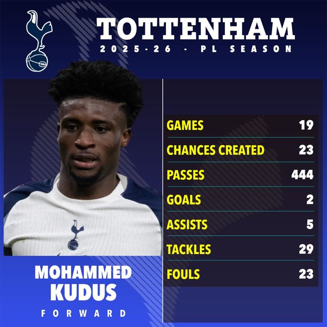 쿠두스는 단순한 공격수가 아니다. 토트넘 공격 구조의 중심이다. 손흥민 이탈 이후 가장 직접적인 위협을 만드는 자원이다. 드리블, 전진, 1대1 돌파까지 모두 책임진다. 실제로 리그 최다 드리블 성공 기록을 유지할 정도로 영향력이 크다.