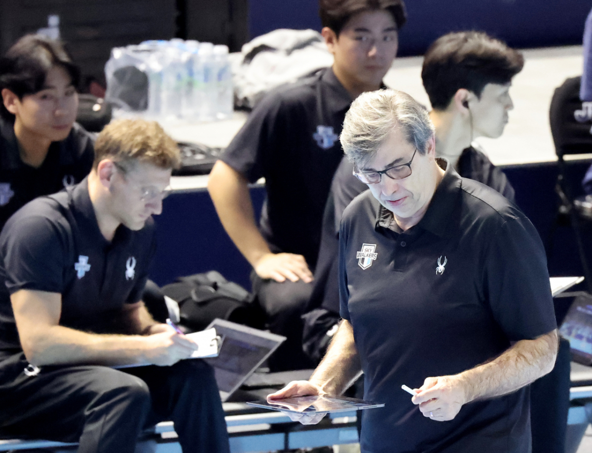 현대 블랑감독이 10일 인천 계양체육관에서 열린 진에어 2025-2026 V리그 챔피언결정전 대한항공과 현대캐피탈 5차전 에서 코트를 응시하고 있다. 2026.04.10.