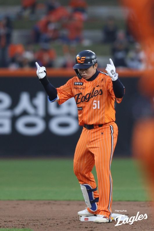 한화도 7회말 한 점을 따라붙었다. 노시환이 초구 우익수 뜬공으로 물러난 뒤 강백호가 7구 승부 끝 좌전 2루타를 치고 나갔고, 곧바로 나온 채은성의 중전안타에 홈을 밟았다. 점수는 3-4, 한 점 차. 한화가 따라붙자 KIA도 도망갔다. 8회초 올라온 김종수의 134km/h 슬라이더를 공략한 김도영의 솔로포가 터지며 점수는 5-3이 됐다.